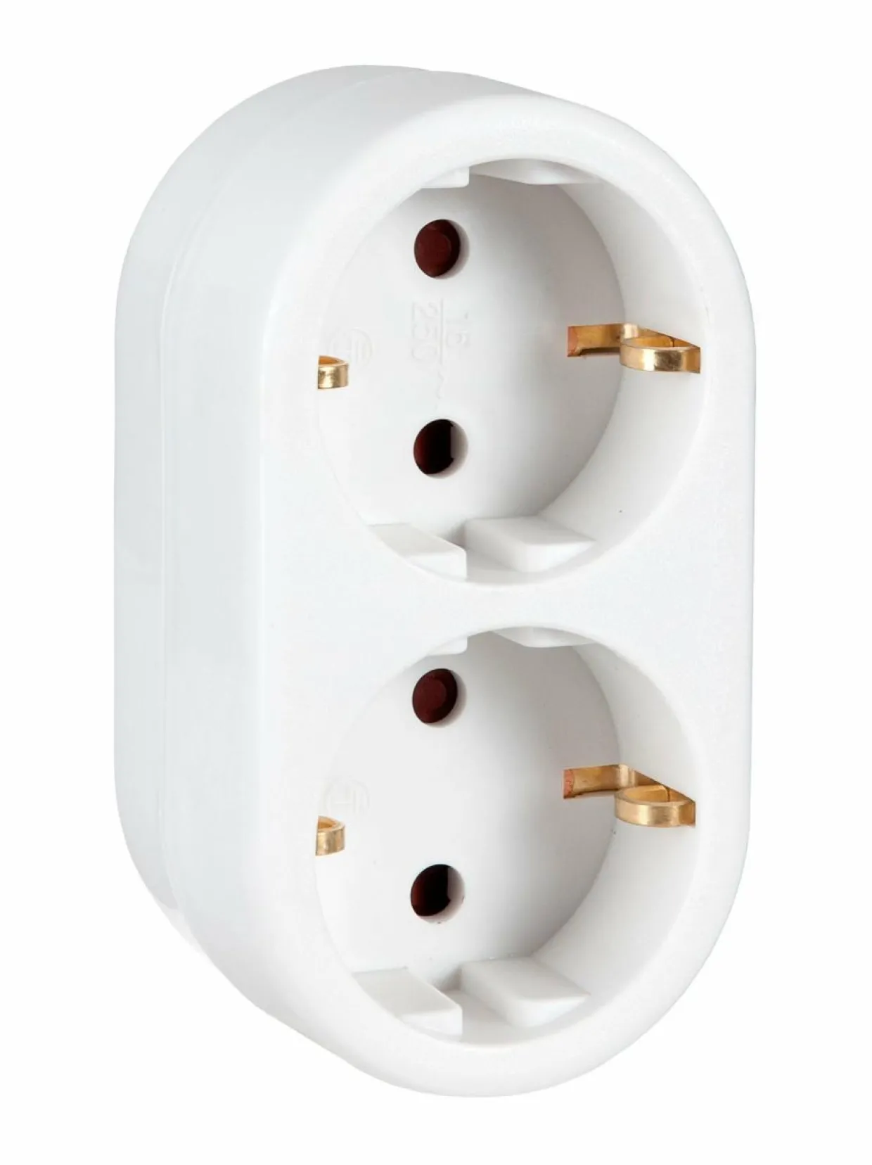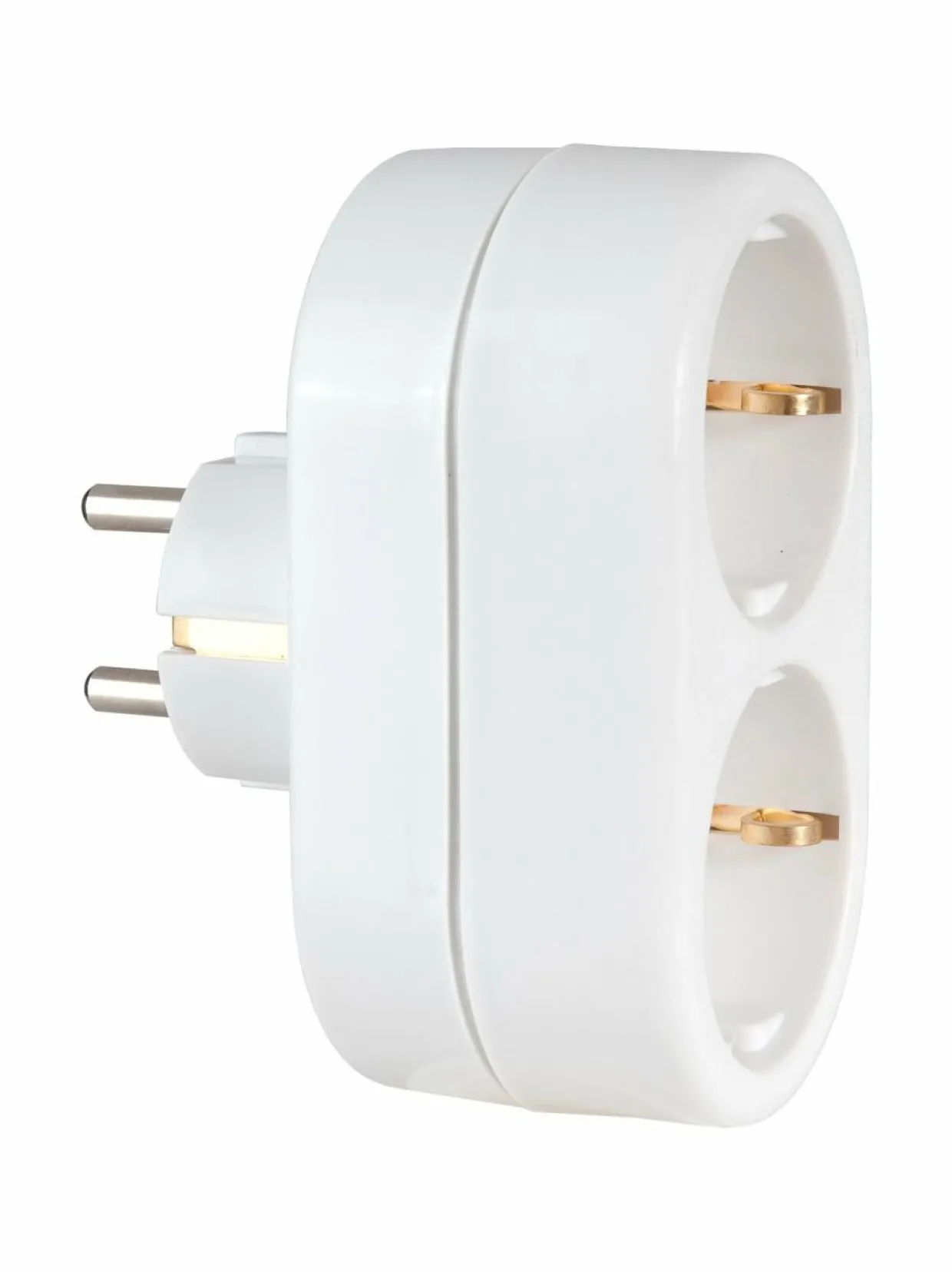 Sisäkäyttöön tarkoitettu valkoinen haaroitin sopii euro- ja suko-pistotulppaisille johdoille. Tuote on lapsiturvallinen.