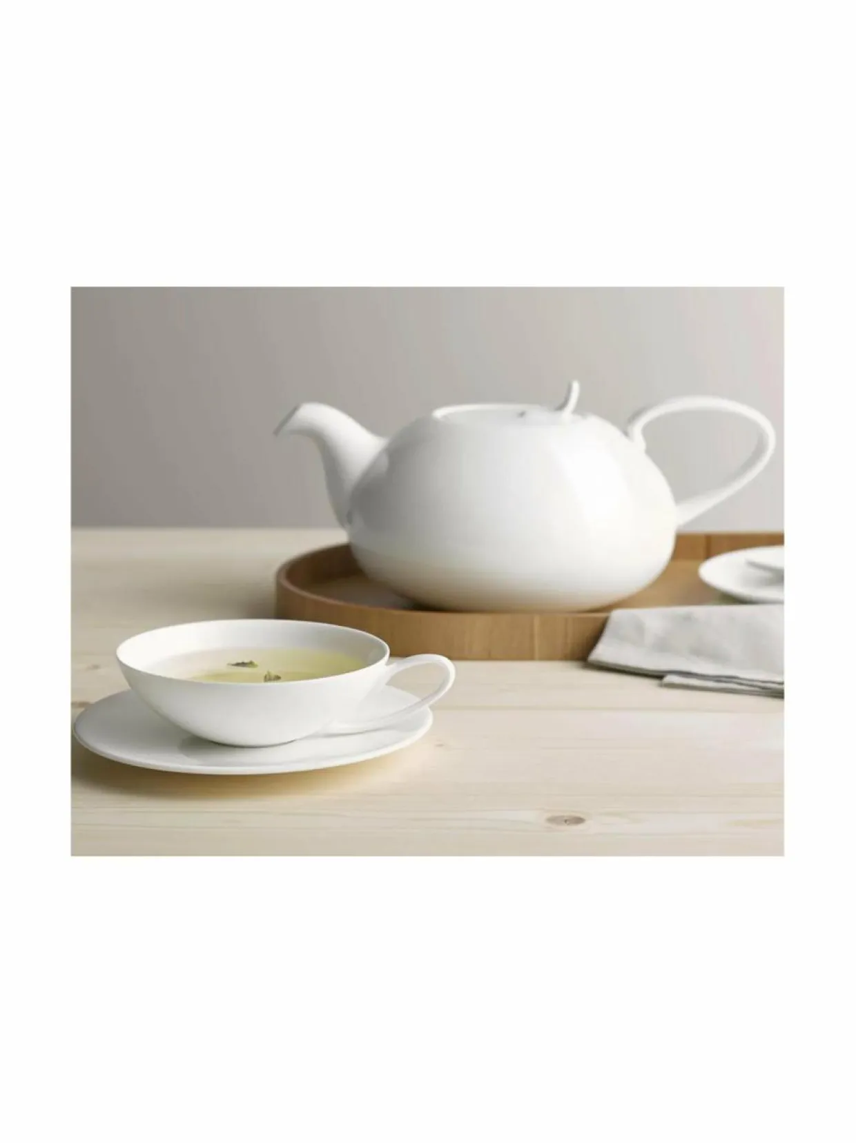 Á Table on elegantti ja ajattoman tyylikäs astiasto jokapäiväiseen käyttöön. Konepesunkestävää luuposliinia. Kannuun kuuluu pieni teesihti.