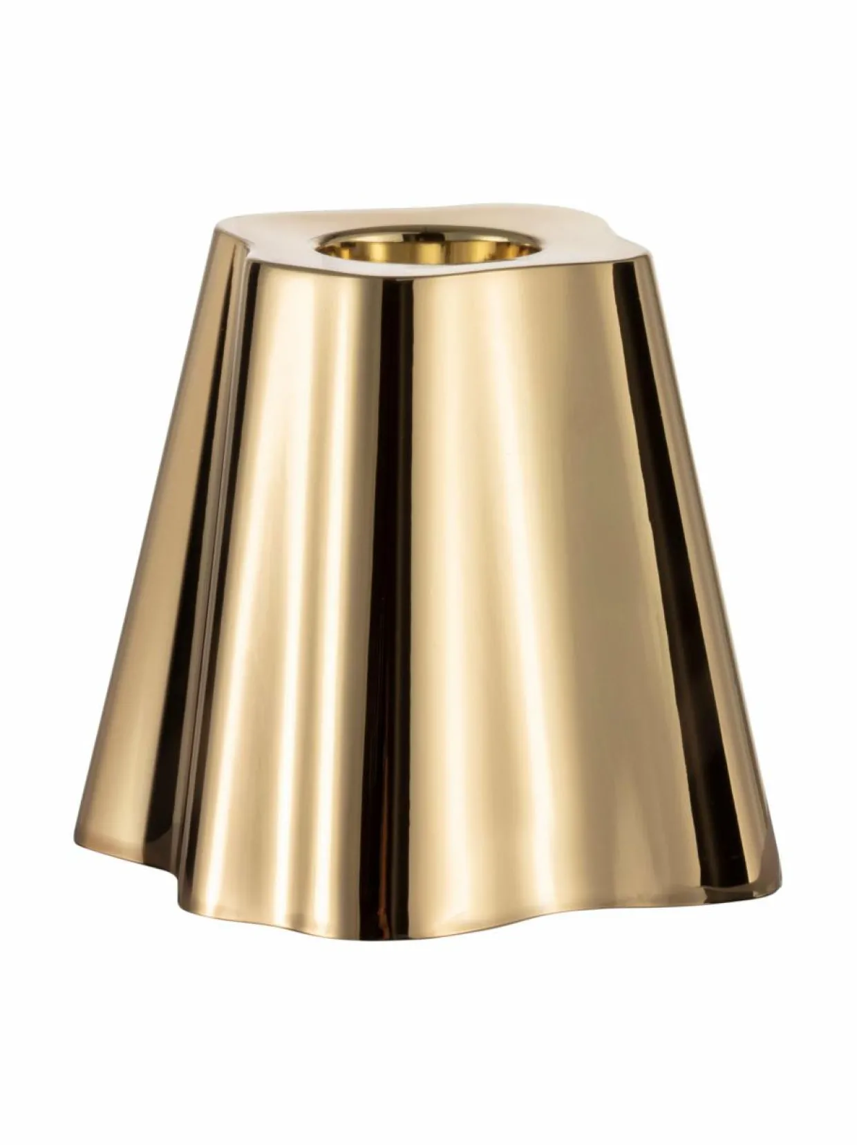 Messinginvärinen Aalto-kynttilänjalka tuo juhlatunnelmaa kattaukseen. Sen orgaaninen muoto on saanut inspiraationsa Aalto-kokoelmasta ja upea messinkiväri korostaa kynttilänvalon kauneutta. Yhdistä Aalto 65 mm kynttilänjalkojen kanssa.