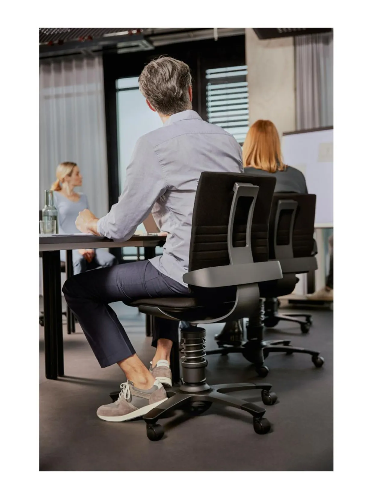 Aeris 3Dee työtuoli mahdollistaa liikkumisen kaikissa kolmessa suunnassa – sivuille, eteenpäin, taaksepäin ja pystysuunnassa. Mukava, puolikorkea selkänoja yksilöllisesti säädettävällä ristiselän tuella on ihanteellinen paremman asennon saavuttamiseksi. 3Dee mahdollistaa rajoittamattoman liikkeen, kannustaa syvempään hengitykseen, tehostaa verenkiertoa ja parantaa aineenvaihduntaa. Koska tuolin nivel on niin lähellä lattiaa, ylävartalo voi liikkua kaikkiin suuntiin, kun taas selkä pysyy luonnollisesti suorana, vaikka nojaisit eteenpäin. Se mahdollistaa joustavan sivuttaisliikkeen, pidentää ulottuvuutta ja varmistaa optimaalisen istumisasennon työtasoon suhteutettuna, pitäen lihaksesi, nikamien välilevyt, jänteet ja nivelet kunnossa.