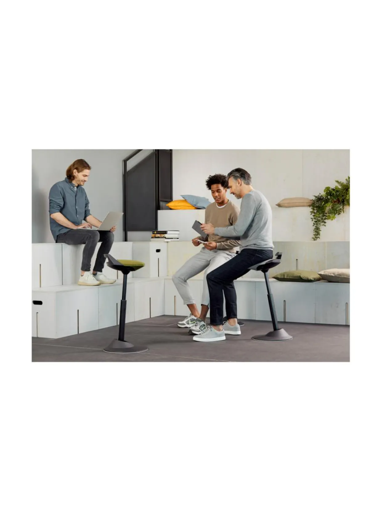 Aeris Muvmanin liikkuva pallonivel mahdollistaa jatkuvat mikroliikkeet, jotka pitävät nikamavälilevyt joustavina edistäen samalla hyvää verenkiertoa päästä varpaisiin. Tuolin pallonivel on sijoitettu mahdollisimman lähelle lattiaa, jonka ansiosta pysyt pystysuorassa asennossa – riippumatta siitä, miten tuolilla liikut. Kestävän ja luotettavan rakenteen vuoksi voit nojata mukavasti ja turvallisesti kaikkiin suuntiin.