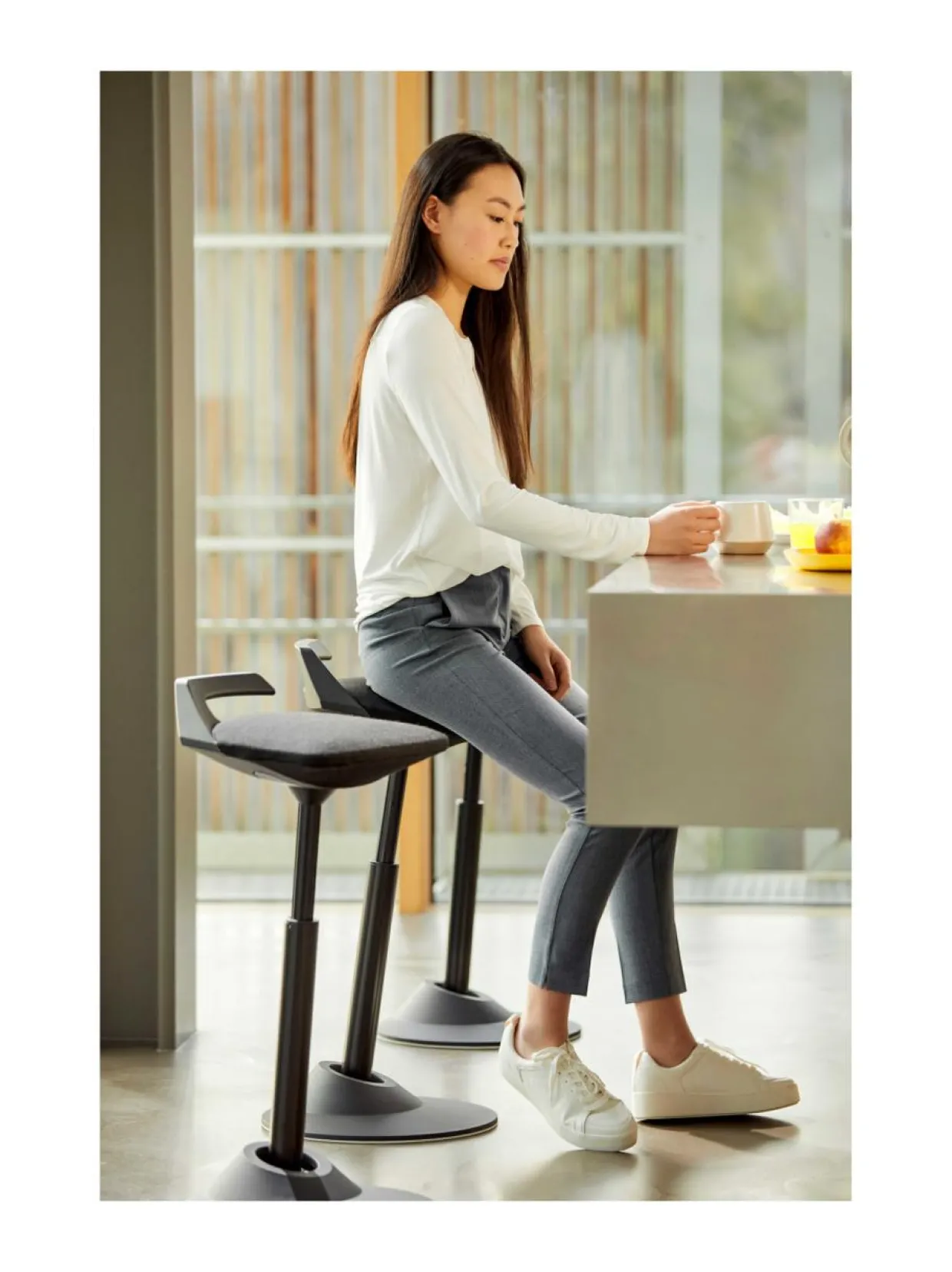 Mikään muu seisomatuki ei salli niin monipuolista korkeuden säätöä kuin Muvman. Riippumatta henkilön pituudesta ja työskentelypinnan korkeudesta, istuma- ja seisonta-asento voidaan säätää yksilöllisesti. Kevyen rakenteen ansiosta tuolia voidaan helposti siirtää paikasta toiseen kätevästä kantokahvasta. Aeris Muvman on patentoitu innovaatio sen muotoilun ja toiminnallisuuksien osalta: tukeva pohja, joustava nivel, eteenpäin nojaava kaasujousi ja älykäs istuintyyny. Vahva pohjalevy on varustettu luistamattomalla kumilla, joka antaa turvallisen pidon tuolilla liikkumisen aikana – ja se suojaa myös lattiaa.