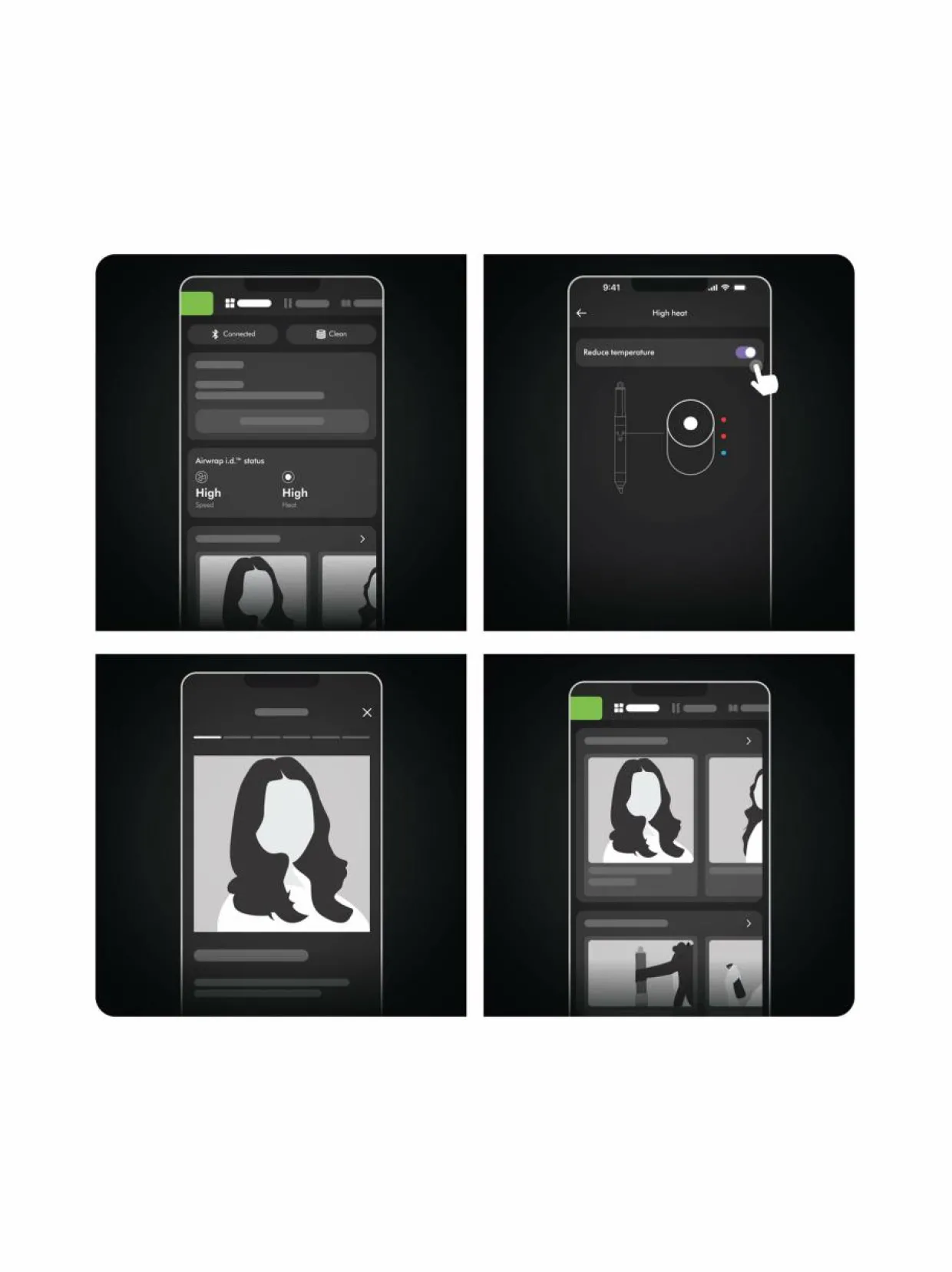 - Mukautettua muotoilusisältöä – MyDyson-sovellus™ ehdottaa henkilökohtaisen hiusprofiilisi perusteella uusia ideoita tai tarjoaa muotoiluvinkkejä asiantuntijoilta.