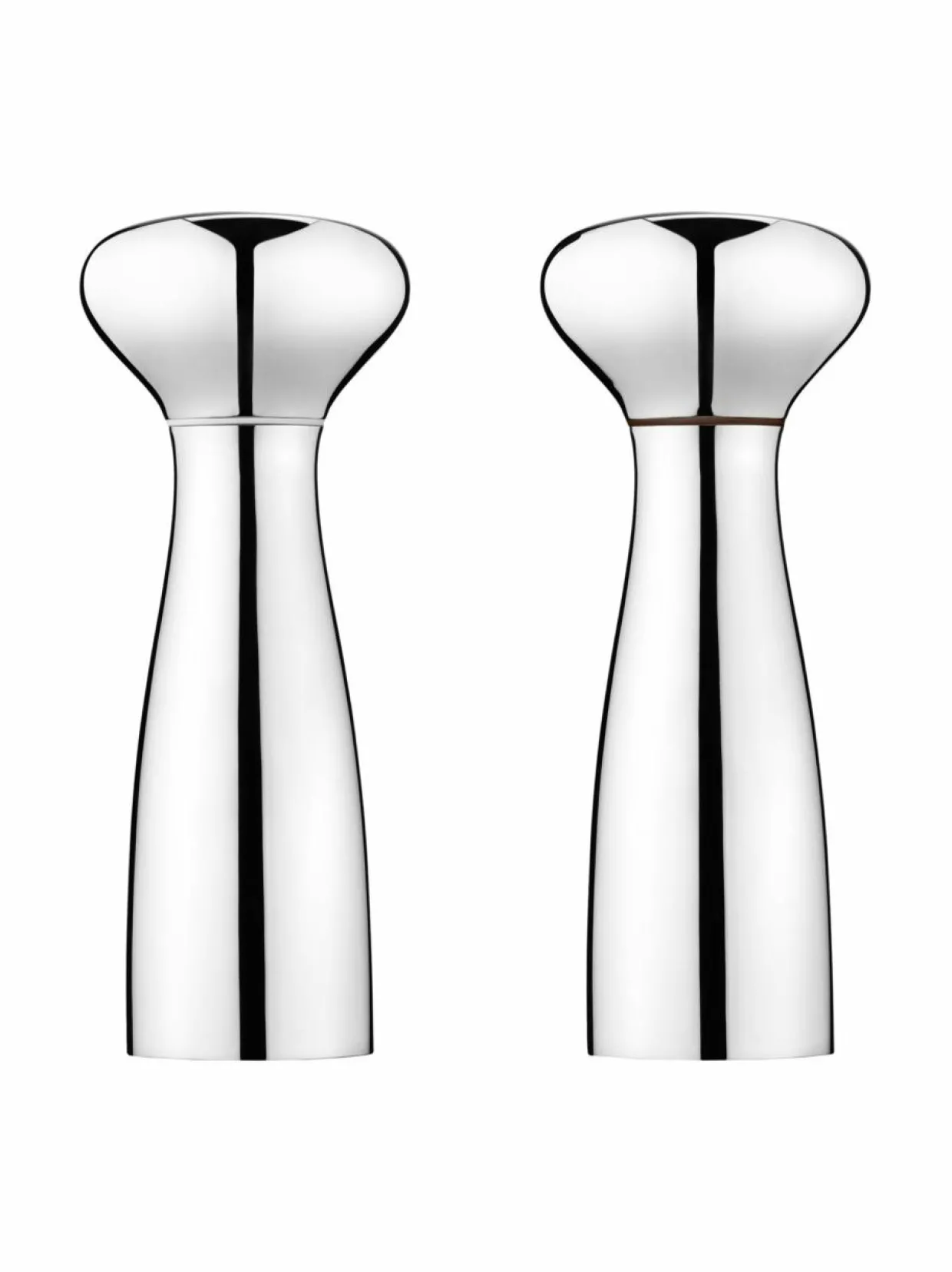 Tyylikkäät Alfredo-myllyt on valmistettu ruostumattomasta teräksestä ja koneisto on keraaminen. Käätämällä myllyn pohjassa olevaa ruuvia, jauheen karkeus muuttuu. Myllyn korkeus on 20 cm. Design Alfredo Häberli. Pakkauksessa on suola- ja pippurimylly.
