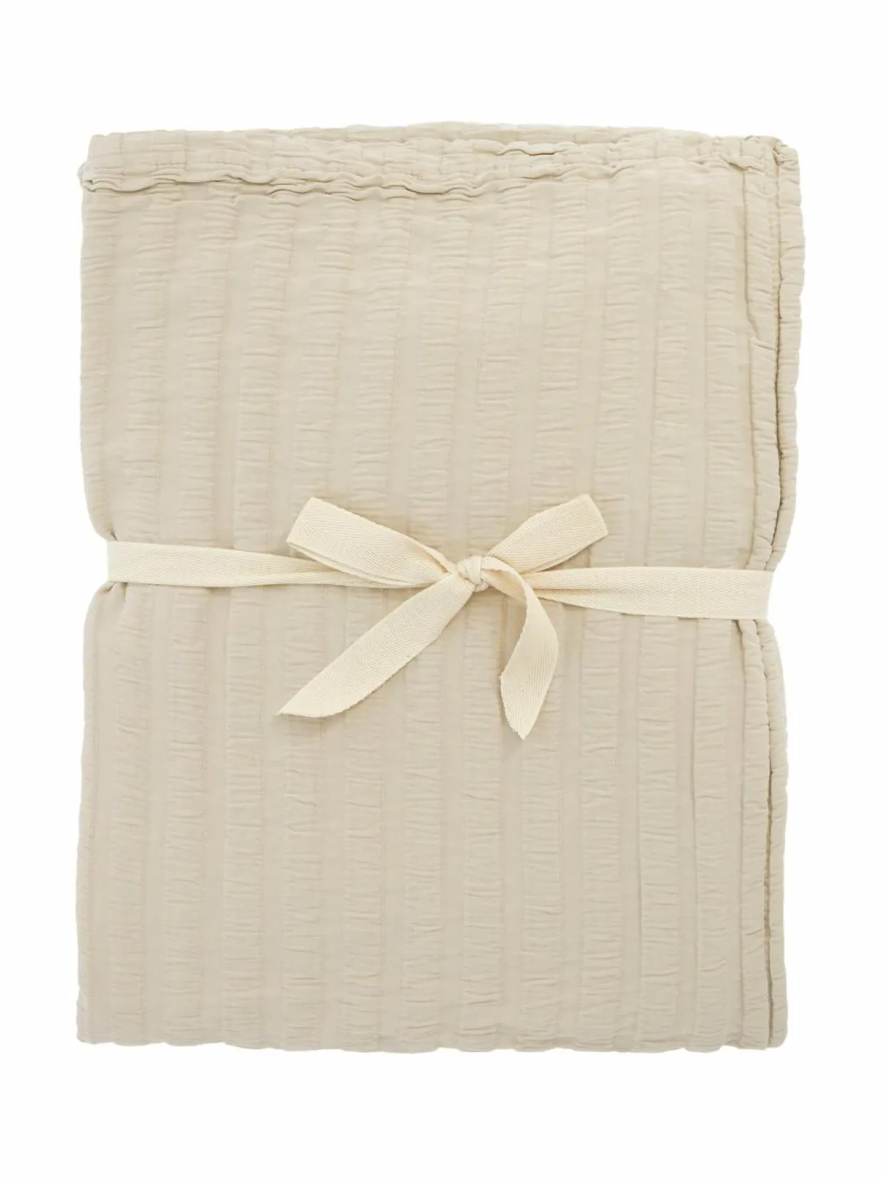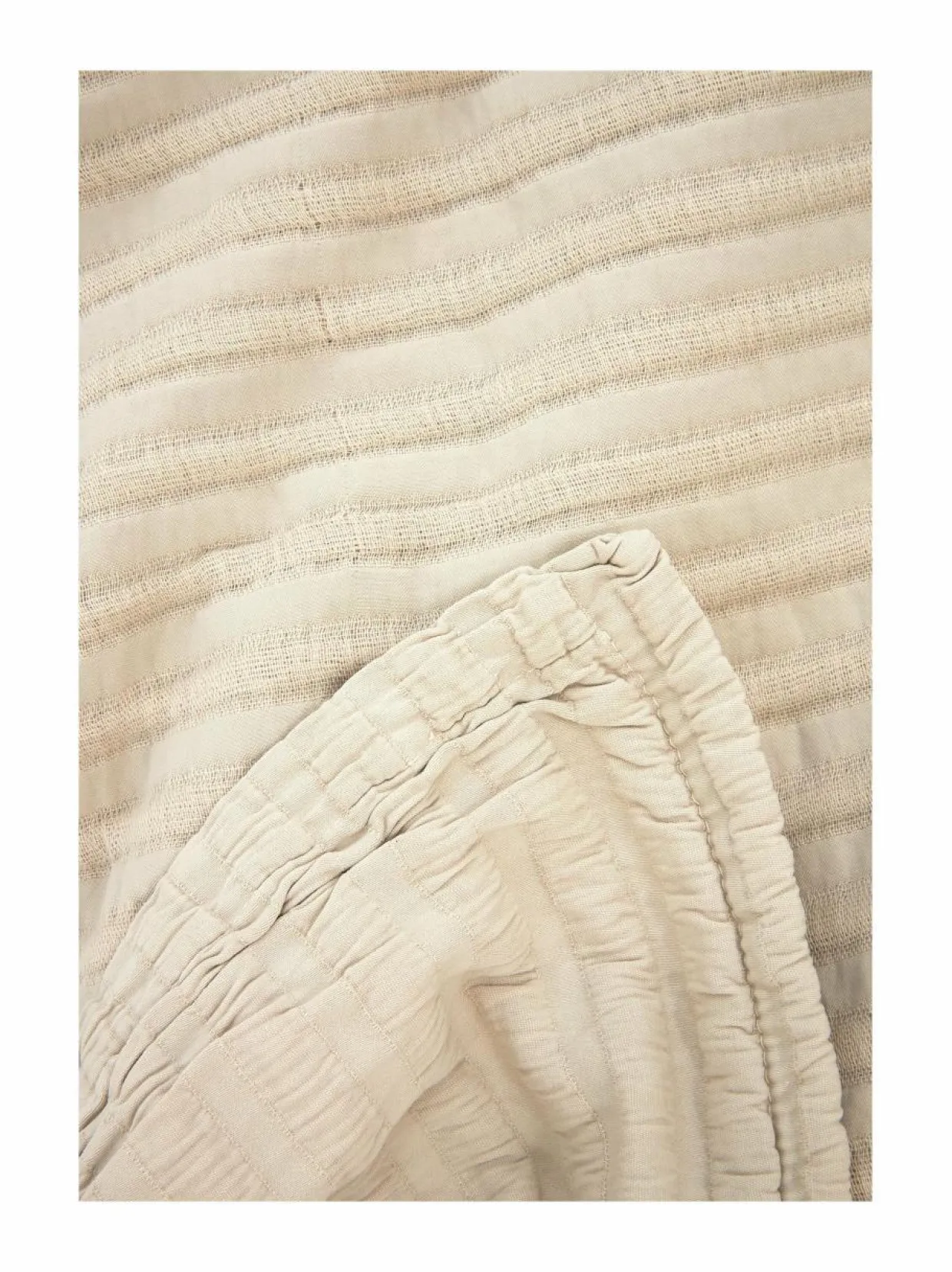 Casa Stockmannin Amity-päiväpeite suojaa vuodevaatteita ja luo rauhallisen tunnelman makuuhuoneeseen. Materiaalina on käytetty ihoystävällistä puuvillaa.