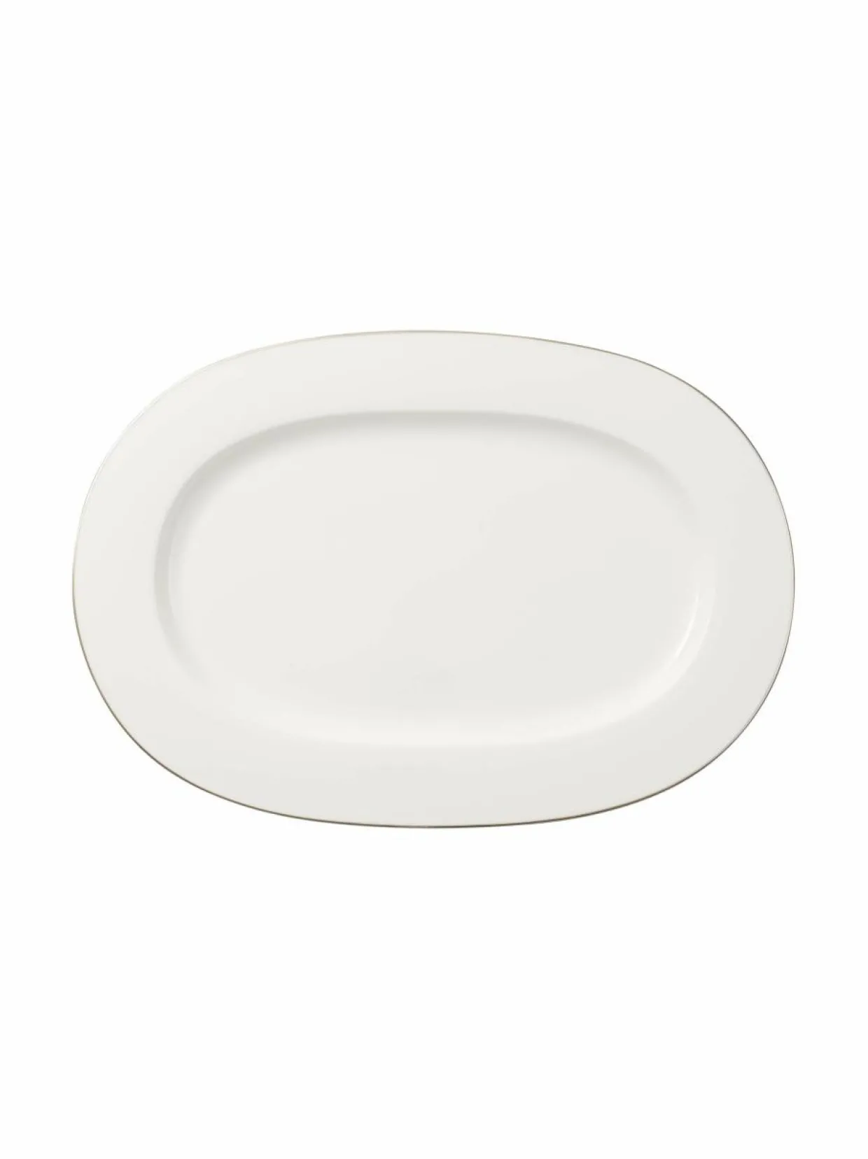 Hopeanhohtoisella reunalla viimeistelty tarjoilulautanen kuuluu Villeroy & Bochin eleganttiin Anmut Platinum No.1 -astiasarjaan, jonka klassisen kauniit astiat kestävät aikaa ja sopivat erilaisiin kattauksiin niin arkiaterialle kuin juhlapöytäänkin.