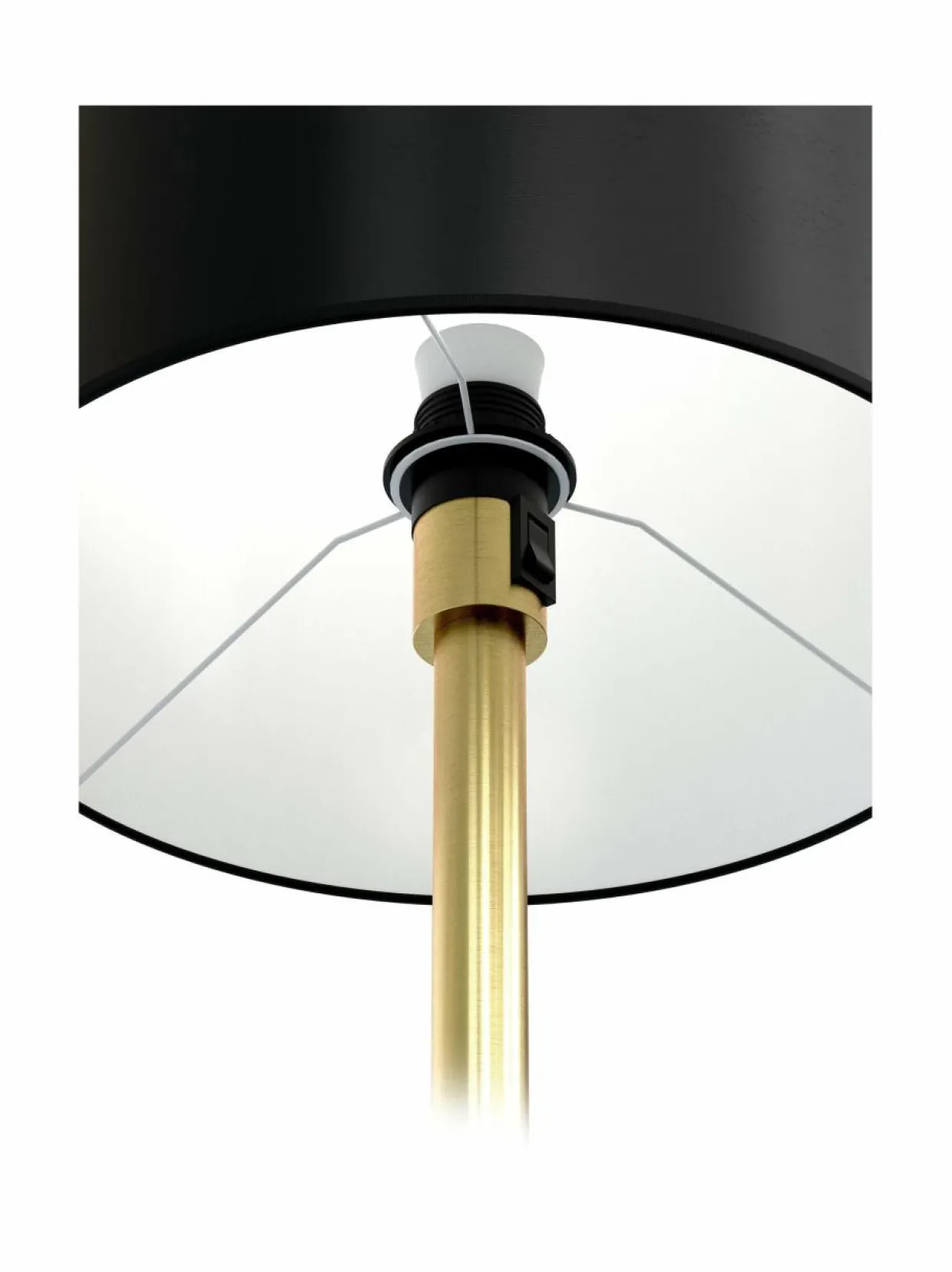 Lämpimän messingin ja tummansävyisen kangasvalaisimen yhdistelmä luo elegantin ja ajattoman vaikutelman sopien ihanteellisesti klassisesti sisustettuihin tiloihin tai antaen modernille tilalle hieman perinteisyyttä.