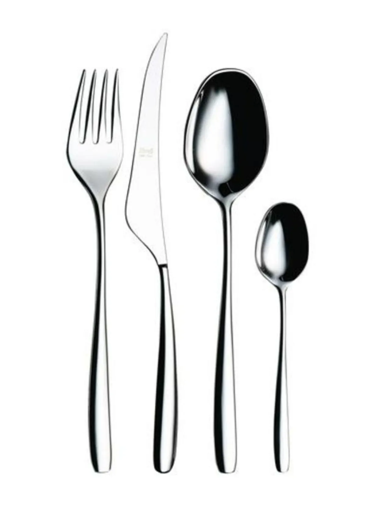 Moderni design, italialainen muotoilu. Aterinsetti sisältää kuusi ruokahaarukkaa, kuusi ruokaveistä, kuusi ruokalusikkaa ja kuusi kahvilusikkaa. Konepesunkestävää korkealaatuista suomalaista ruostumatonta terästä.