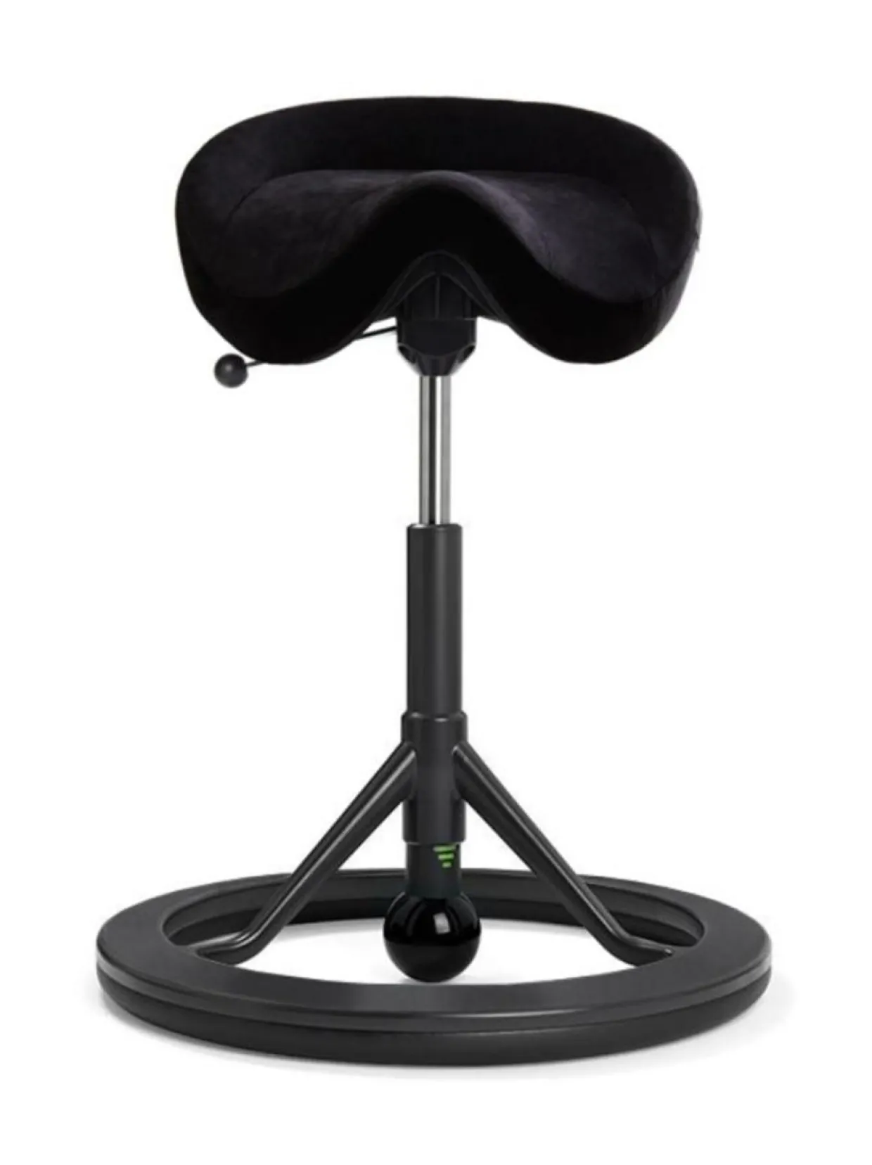 Istuin on pyöristetty ja sen keskellä on kaareva kohouma, joka vähentää lantiopohjaan kohdistuvaa painetta.