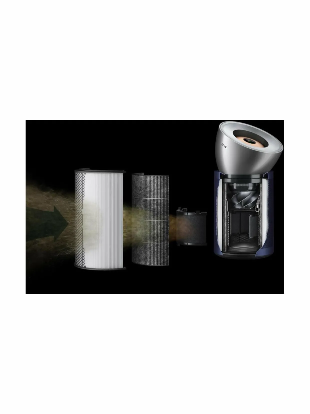Dysonin uusin ilmanpuhdistin hyödyntää Cone Aerodynamics -teknologiaa tarjoten tehokkaan ilmanpuhdistuksen, kierrättäen ilmaa ja ohjaten jopa kaukaiset epäpuhtaudet sisäänsä suljettujen suodattimien läpi. Suunniteltu koko huoneen puhdistukseen, jopa suurissa tiloissa.