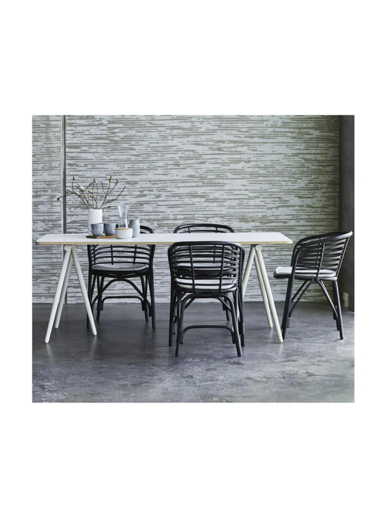 Elegantti rottinkinen Blend-tuoli toimii niin ruokapöydän tuolina kuin yksittäisenäkin lisätuolina. Ulkokäyttöön. 54 cm lev, 59 cm syv, 75 cm kork, 45 cm istuinkork, 71 cm käsinojakork.