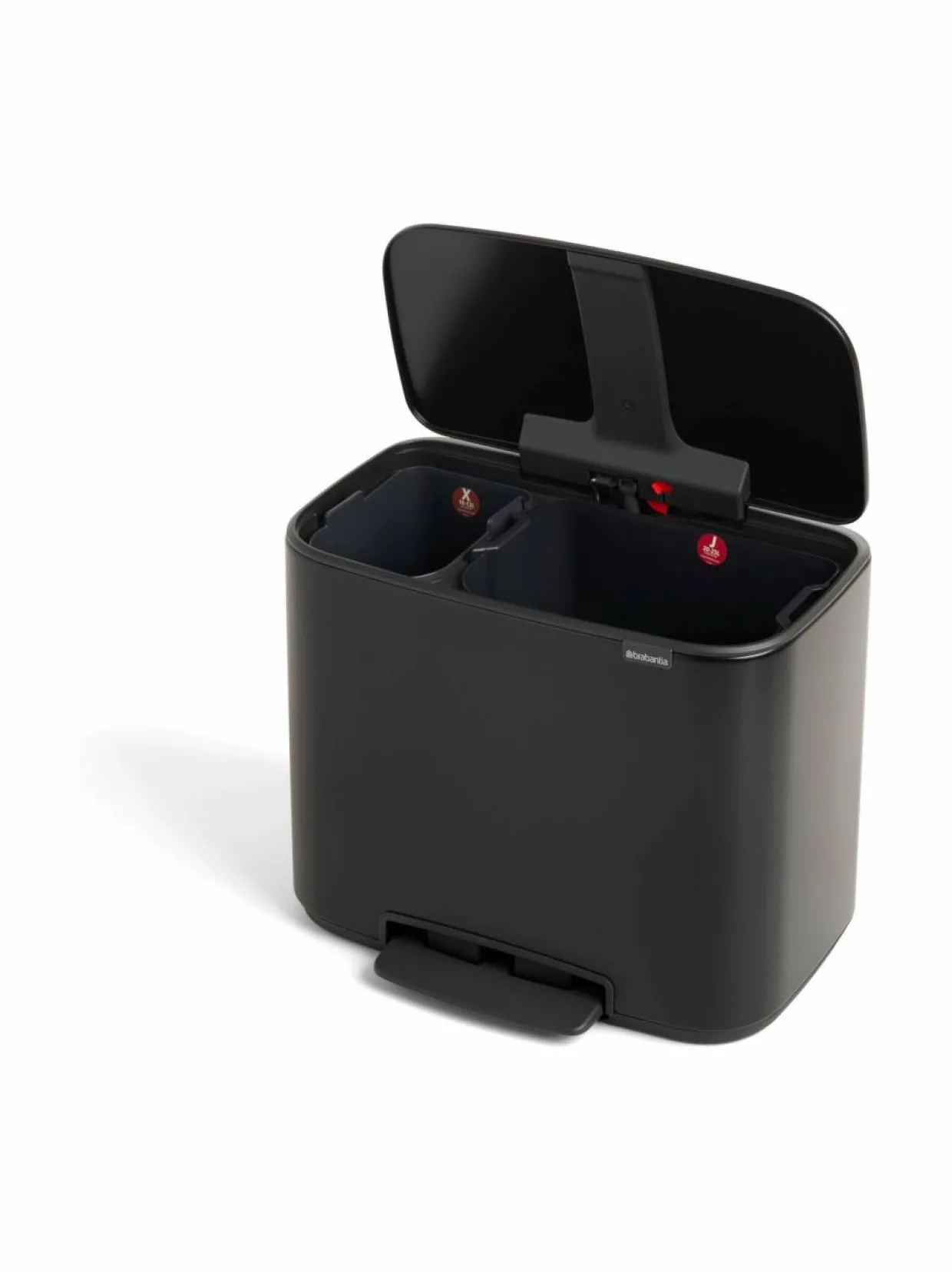 Brabantian Bo-poljinroskakorin ansiosta näet jätteiden lajittelun uusin silmin. Roska-astia sopii ihanteellisesti kodin jätteiden lajitteluun, sillä tuotteessa on kaksi sisäastiaa. Hajutiiviissä roskakorissa on kätevä poljinmekanismi ja automaattinen, erittäin hiljainen sulkumekanismi. Liukuesteillä varustettu pohja ei naarmuta lattiaa ja roska-astia pysyy tukevasti pystyssä. Muotoilunsa ansiosta Bo-poljinroskakori mahtuu tiiviisti seinää vasten.