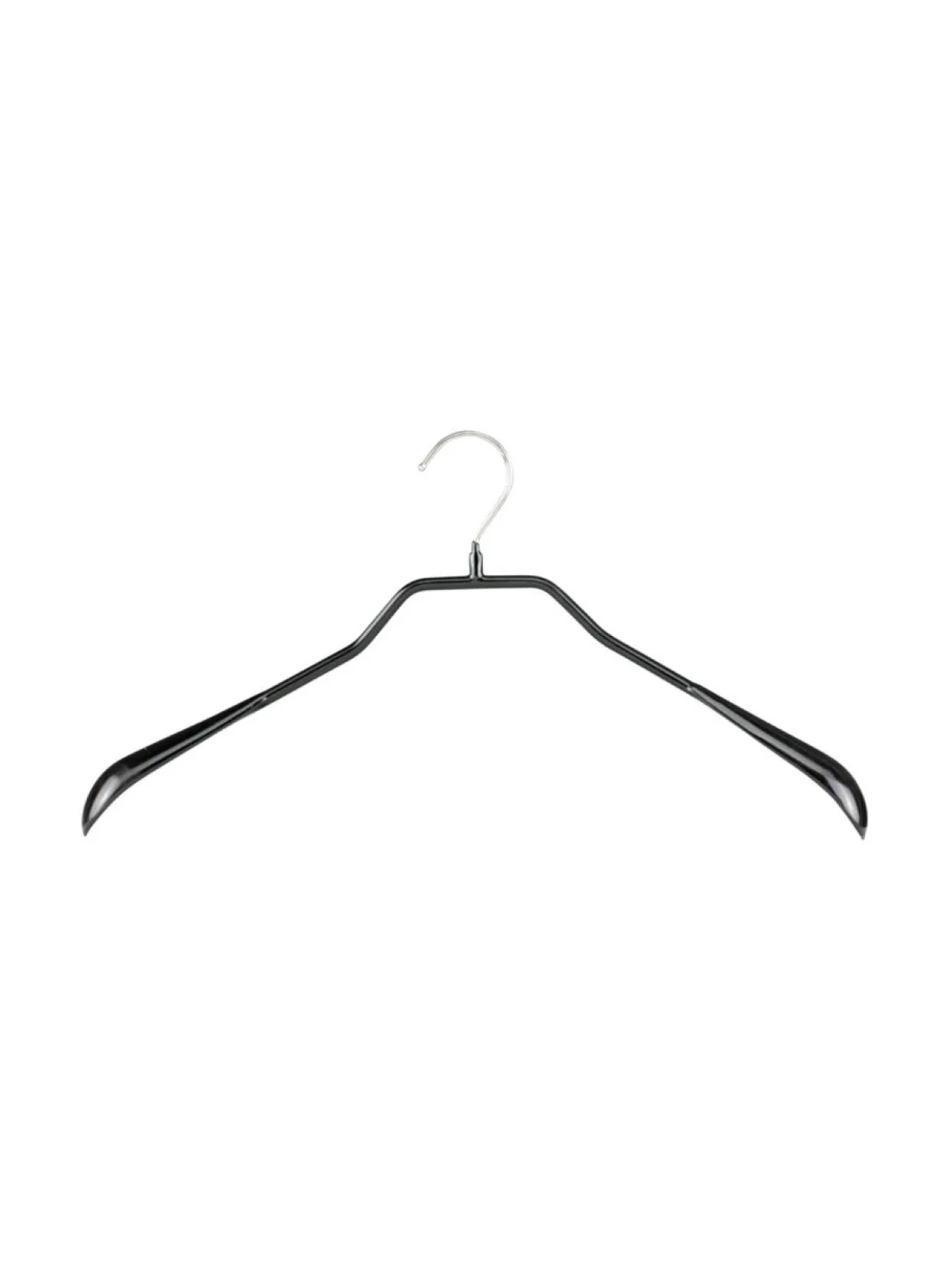 46 cm leveä takkiripustin, jonka kitkakuminen pinta estää vaatteiden liukumisen. Levennetyt olkapäät antavat vaatteille ryhtiä. Metallinen koukku käännettävissä 360°. Ripustin ei sisällä raskasmetalleja.