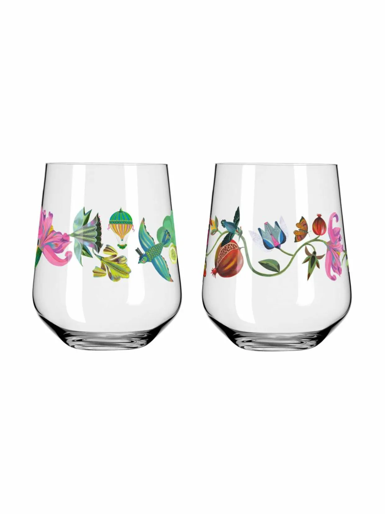 Pakkaukseen kuuluu kaksi eleganttia gini-/juomalasia, joita koristaa Olaf Hajekin suunnittelema uniikki kuvio. Materiaalina on käytetty astianpesukoneen kestävää kristallia.