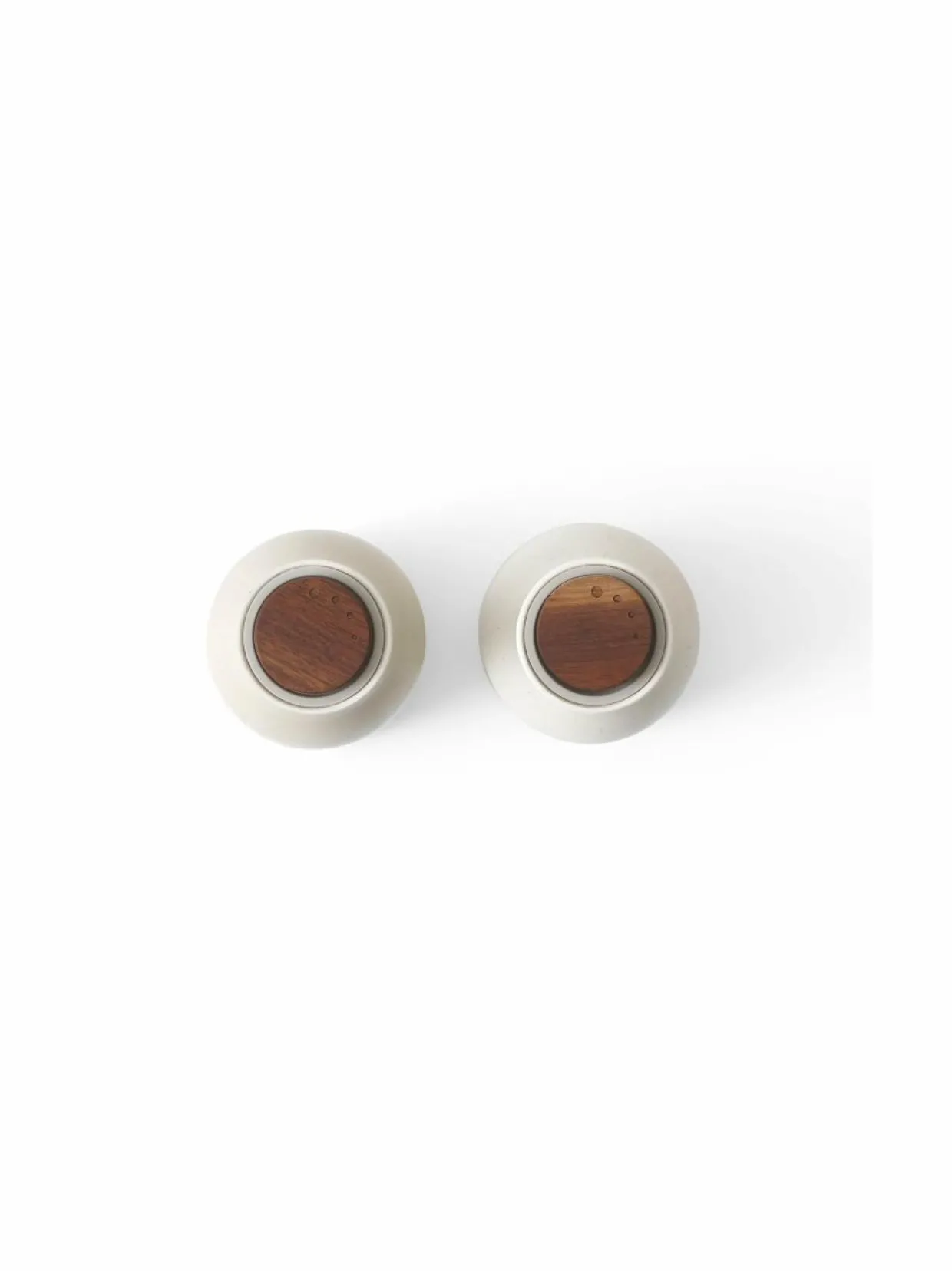 Audon suola- ja pippurimyllyt on leikkisästi muotoiltu pullojen näköisiksi. Keramiikkamyllyissä on pähkinäpuiset yksityiskohdat.