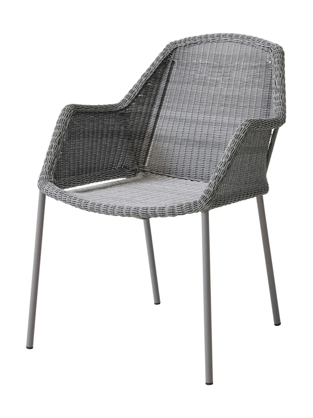 Breeze-tuoli ulkokäyttöön, pinottava. 60 cm lev, 62 syv, 83 kork, 45 istuinkork. Vaaleanharmaa Cane-line Weave® -punosmateriaali, alumiinirunko.
