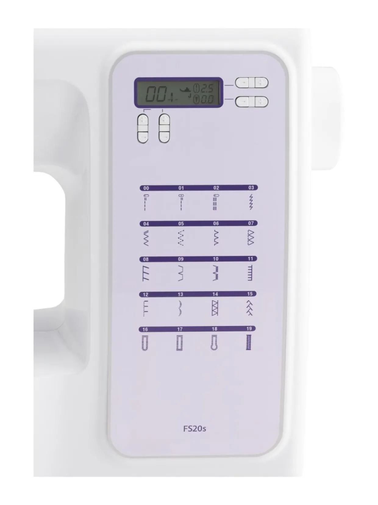 Elektronisessa Brother FS20s ompelukoneessa on helppolukuinen nestekidenäyttö ja 20 ompeleen valikoima ja se on hyvin vakaa ommella. Sen muovimäärää on vähennetty 46%, joka tekee sen yhdeksi markkinoiden ekologisimmaksi ompelukoneista! Vahva kone ompelee jopa yhdeksää kangaskerrosta. Yksivaiheisen napinläpiautomatiikan avulla kone ompelee kauniit napinlävet (kolme erilaista vaihtoehtoa). Kolmen piston siksak-ommel toimii paikkauksessa erinomaisesti sekä joustavien materiaalien päärmäykseen. Puolan asettaminen on nopeaa ja helppoa. Brother FS20s on loistava kone riippumatta siitä, haluatko kokeilla kädentaitojasi ompelemalla vaatteita tai kodin sisustamiseen liittyviä tekstiileitä. Siinä on vapaavarsi, joka auttaa ompelemaan hankalia alueita, kuten hihoja ja housunlahkeita. Kaksois LED valo auttaa näkemään tarkasti ompelualueen.