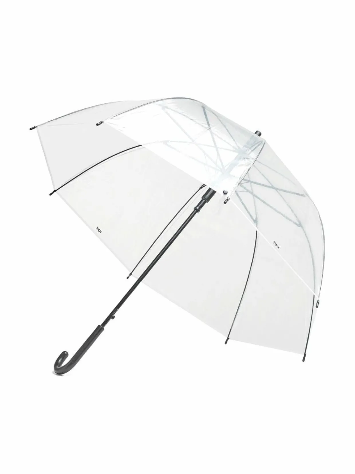 Sateelta voi suojautua tyylillä Hayn läpinäkyvän Canopy-sateenvarjon avulla. Varjon halkaisija on 87 cm.