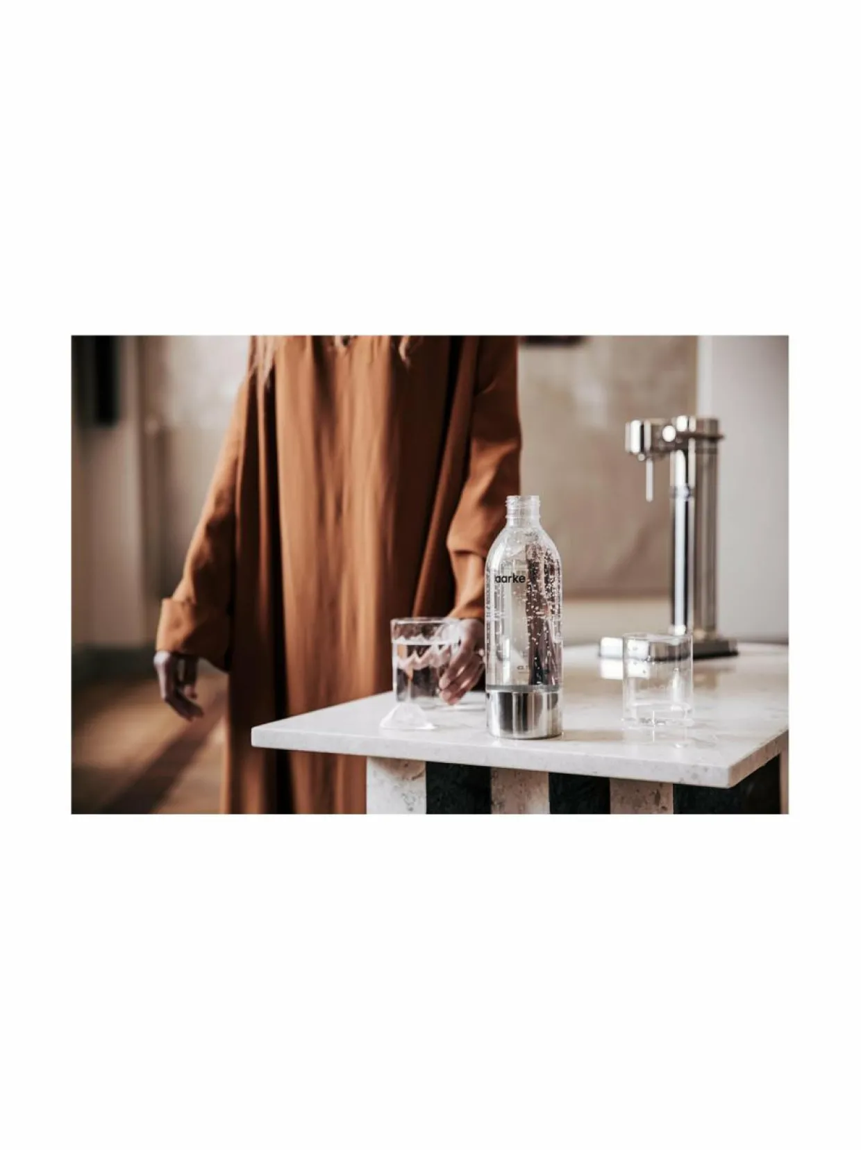 Aarke Carbonator III -hiilihapotuslaitteella voit valmistaa hiilihapollisia juomia kotona. Carbonator III on muotoiltu kiiltävästä ruostumattomasta teräksestä, joka kestää ja tuo keittiöösi tyyliä. Tarkka suutin tuottaa tasaisen ja hallitun virtauksen, joka parantaa hiilihapon imeytymistä veteen ja luo täydellisiä kuplia. Laite toimii kaikkien tunnettujen valmistajien CO2-kaasupulloilla.
