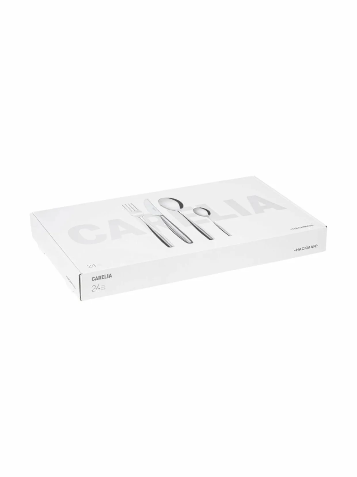 Jo 1960-luvun alussa esitelty aterinsarja sopii edelleen niin arkikäyttöön kuin juhlapöytäänkin. Suunnittelija Bertel Gardberg löysi saaristosta innoitusta Carelian ajattomaan muotoiluun. Aterinsettiin kuuluu 6 pikkulusikkaa, 6 ruokalusikkaa, 6 ruokahaarukkaa ja 6 ruokaveistä. Kiiltävästä ja ruostumattomasta 18/10-teräksestä valmistetut osat ovat konepestäviä.