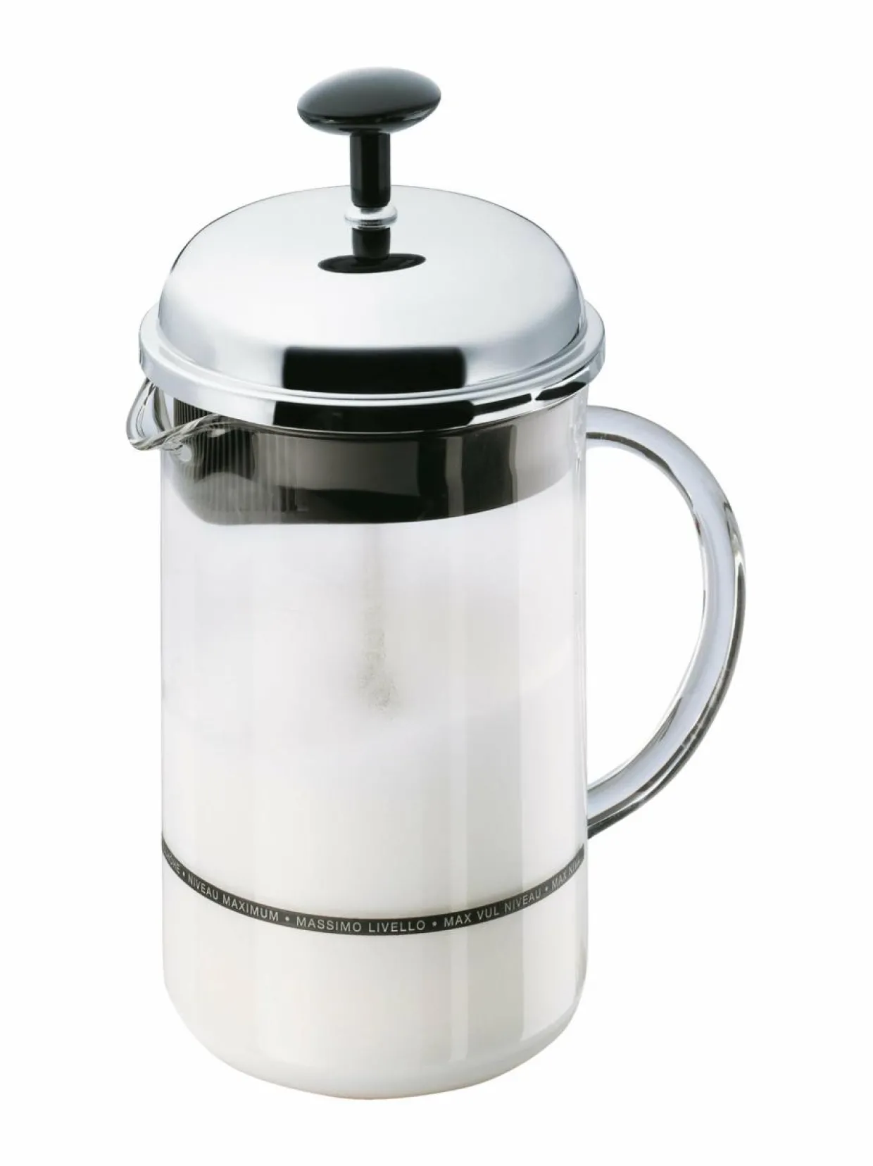 Chambord-maidonvaahdotin tekee hetkessä ilmavaa ja kevyttä maitovaahtoa. Vedä nuppia muutaman kerran, niin kylmä maitovaahto on valmista. Jos tekee mieli lämmintä maitovaahtoa, voit laittaa maidon mikroaaltouuniin ennen vaahdottamista. Sopii kuumalle ja lämpimälle maidolle.