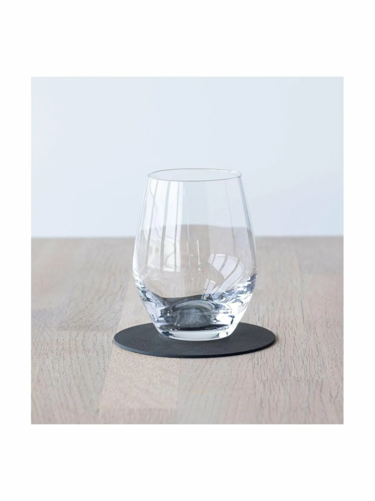 Tanskassa suunniteltu lasin alusta mokantuntuisesta nahasta. Nahka on OEKO-TEX sertifioitua kasviparkittua vaate- ja huonekaluteollisuuden ylijäämänahkaa. Luonnonkuminen pohja estää liukumisen.