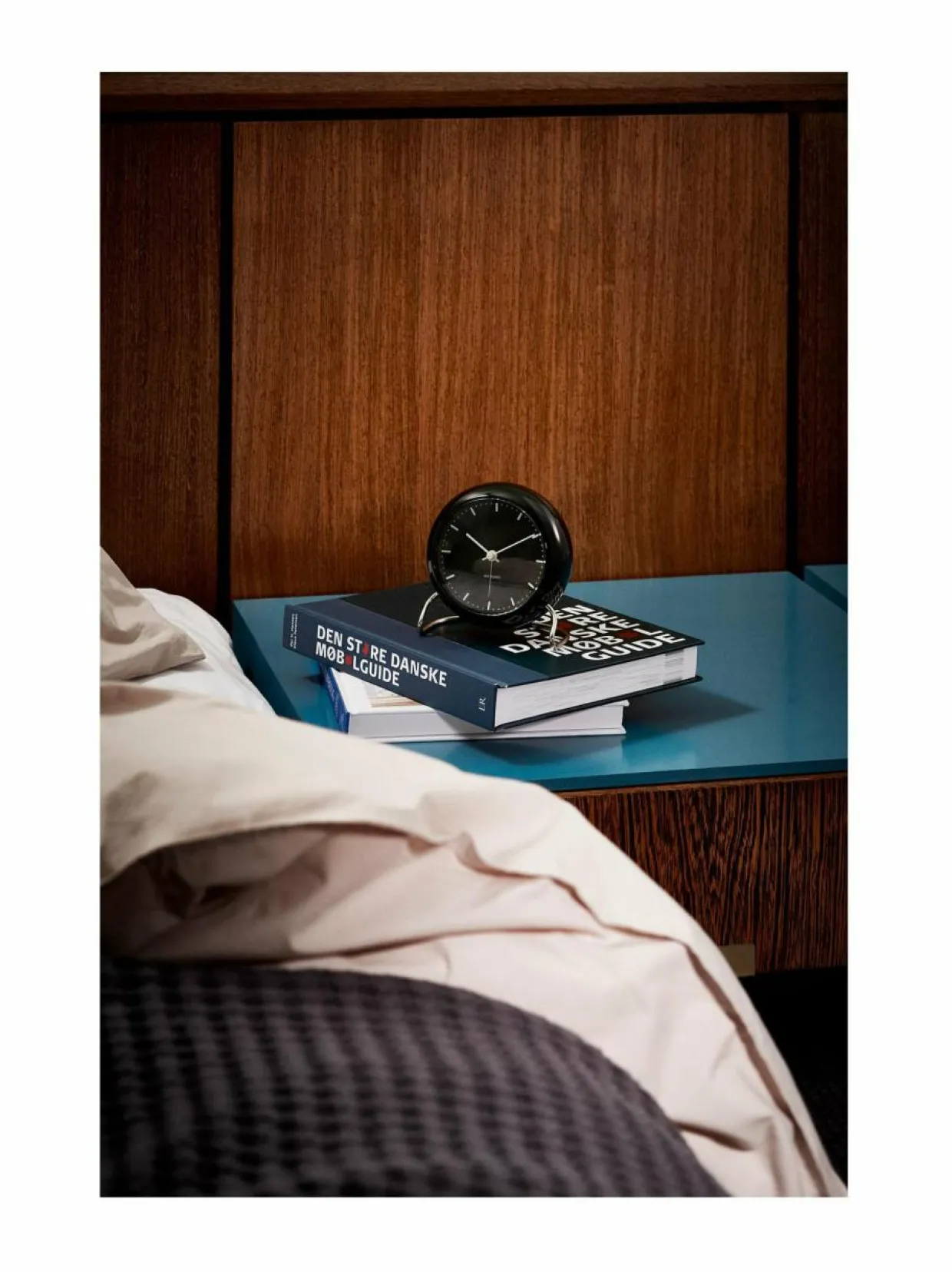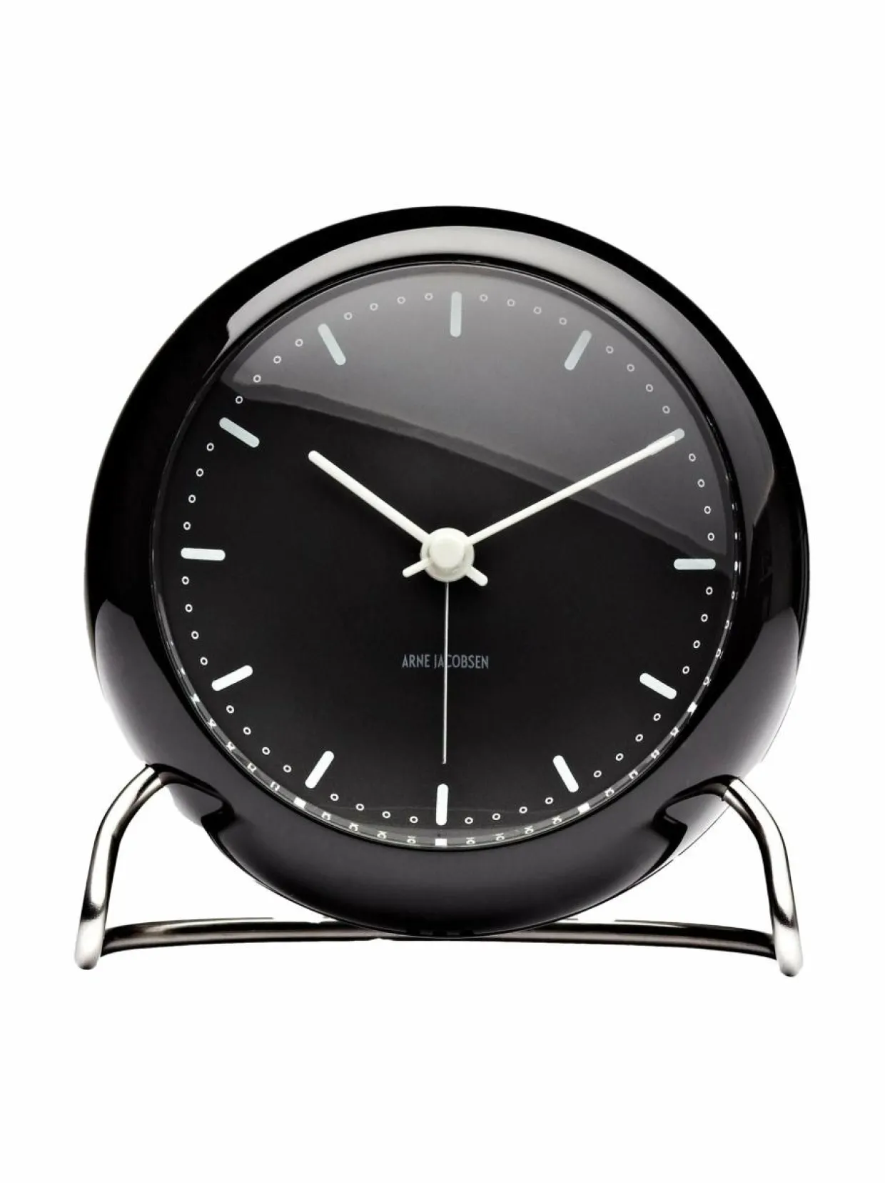Arne Jacobsenin suunnittelema tyylikäs herätyskello toimii kahdella AA-paristolla. Halkaisija 110 mm.