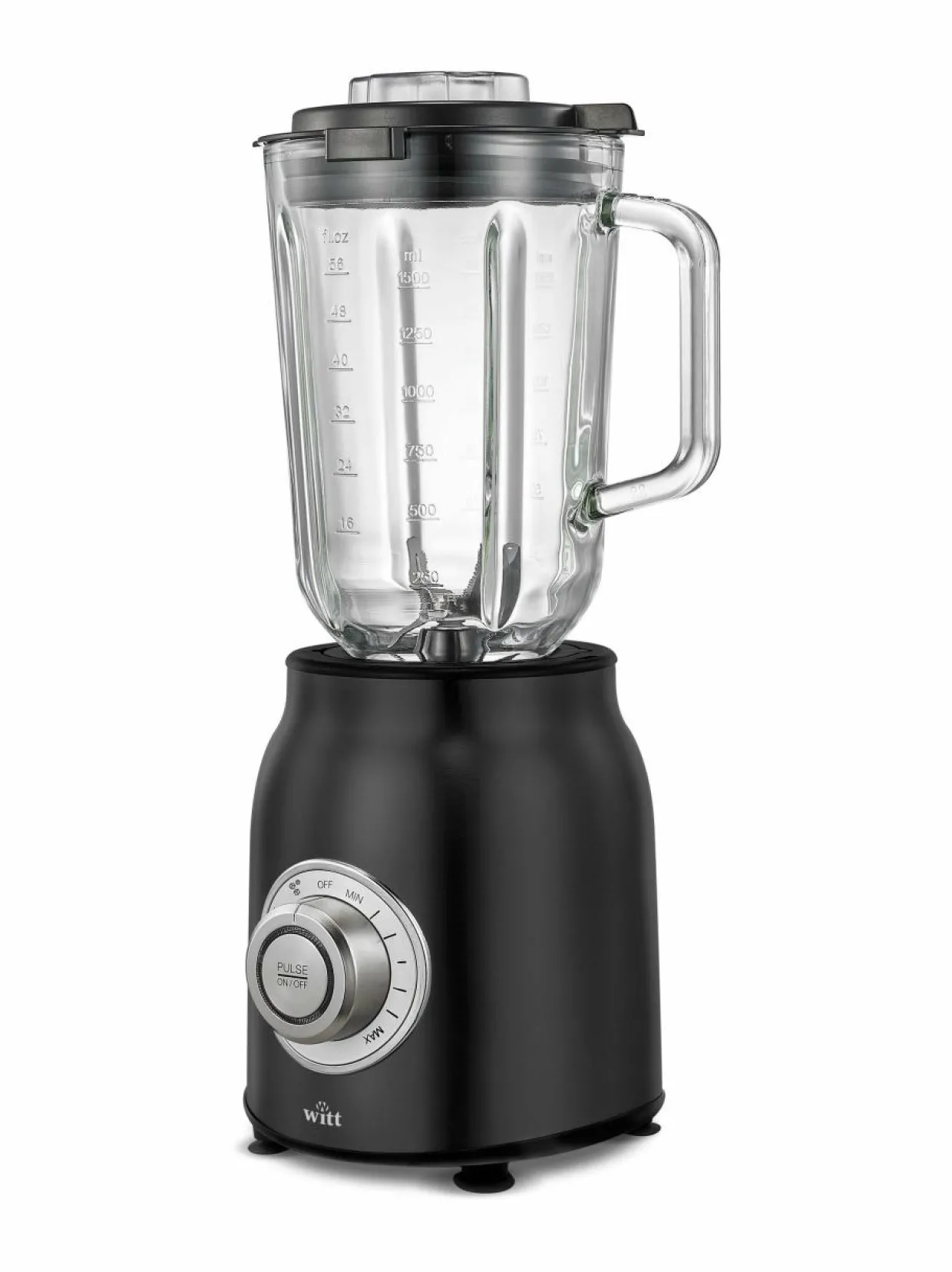Witt Classic -tehosekoittimessa on tyylikäs mattapinnoite ja ajaton muotoilu. Sen runko on terästä ja 1,5 litran kulho lasia. Siinä on 6 sahalaitaista terästerää, joilla valmistat mm. smoothiet ja murskaat jään vaivattomasti.
