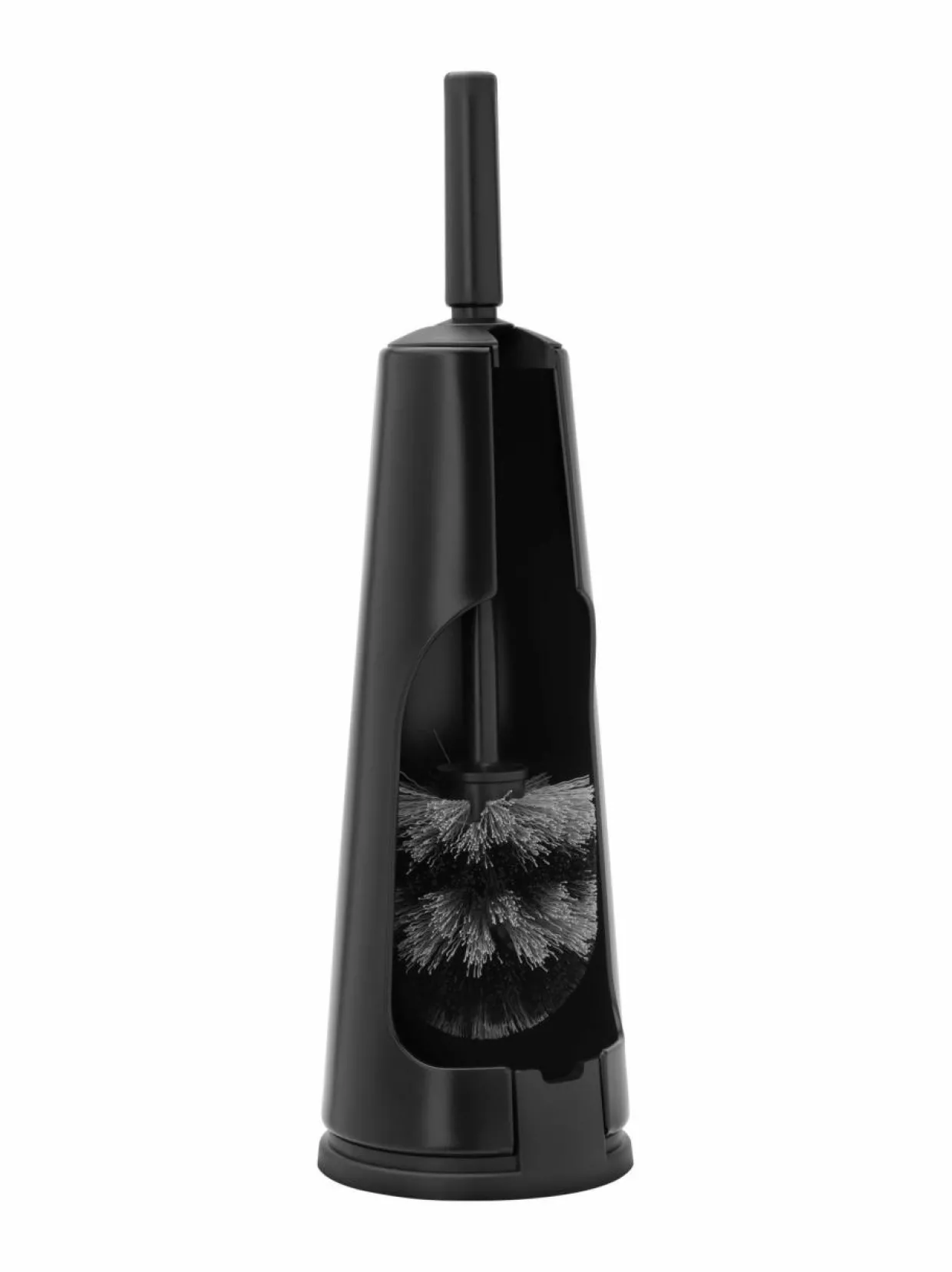 Kätevän wc-harjatelineen muotoilu mahdollistaa harjaosan näkyvyyden ja pitää sen siististi piilossa. Muovipinta kestää kosteutta ja on helppo pitää puhtaana.