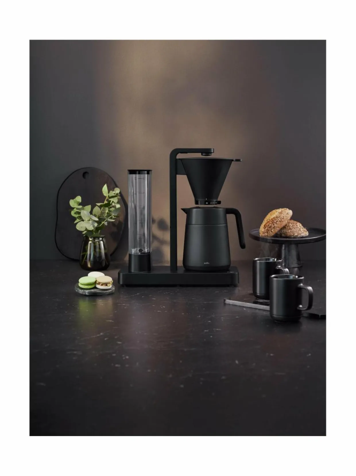 Keittimessä on ainutlaatuinen vesipumppu, joka tyhjentää veden keittimestä täysin valmistusprosessin päätyttyä. Näin kahvinkeittimeen ei jää lainkaan vettä seisomaan.- Moderni, mattamusta kahvinkeitin skandinaavista designia