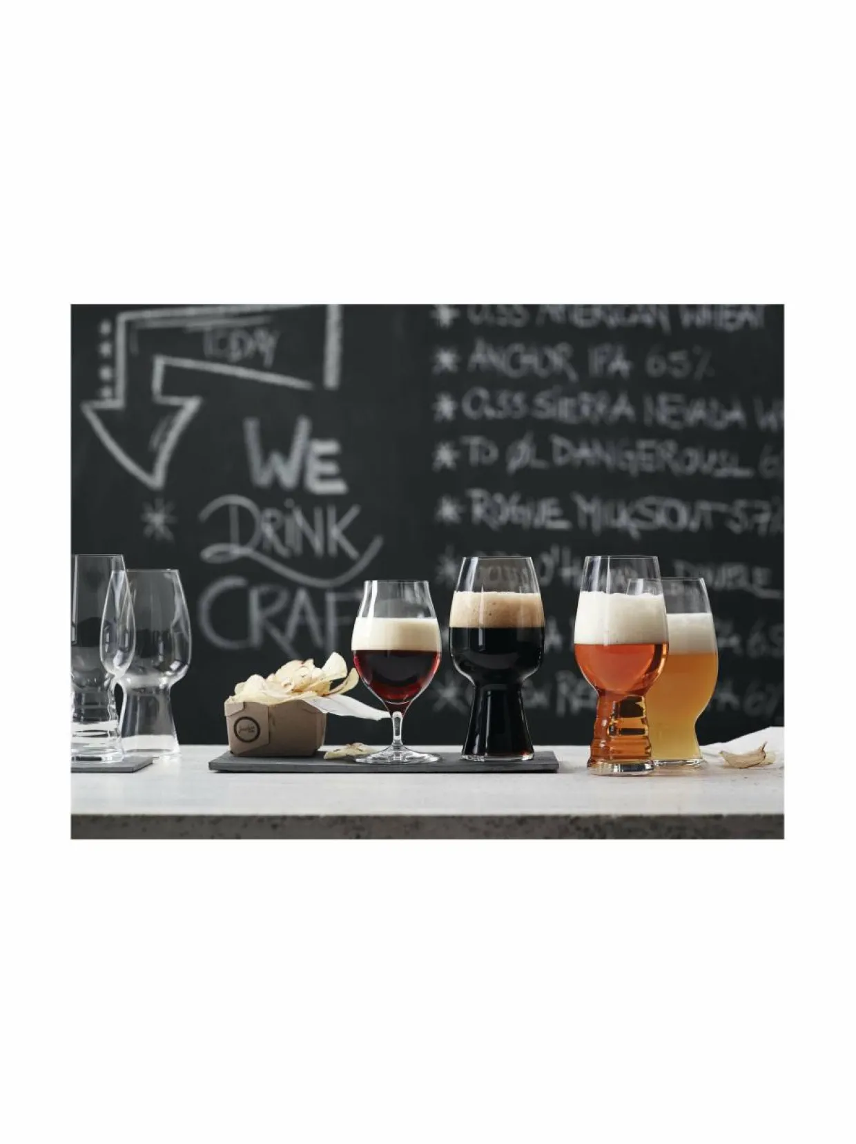 IPA-lasi tukee oluttyypin monipuolisia aromeita, vahvistaa suutuntumaa sekä makua ja säilyttää oluelle tyypillisen vaahdon. Amerikkalais- ja belgialaistyylisille vaaleille vehnäoluille suunniteltu American Wheat Beer/Witbier -lasi tuo esiin olutlajille tyypilliset hedelmäiset aromit. Yhteistyössä panimoiden kanssa kehitetty Stout-lasi korostaa oluttyypin paahdetun maltaan, kahvin ja suklaan vihvahteita. Tulppaaninmuotoinen Barrel Aged Beer -lasi sopii erityisesti vahvoille tynnyrikypsytetyille oluille.