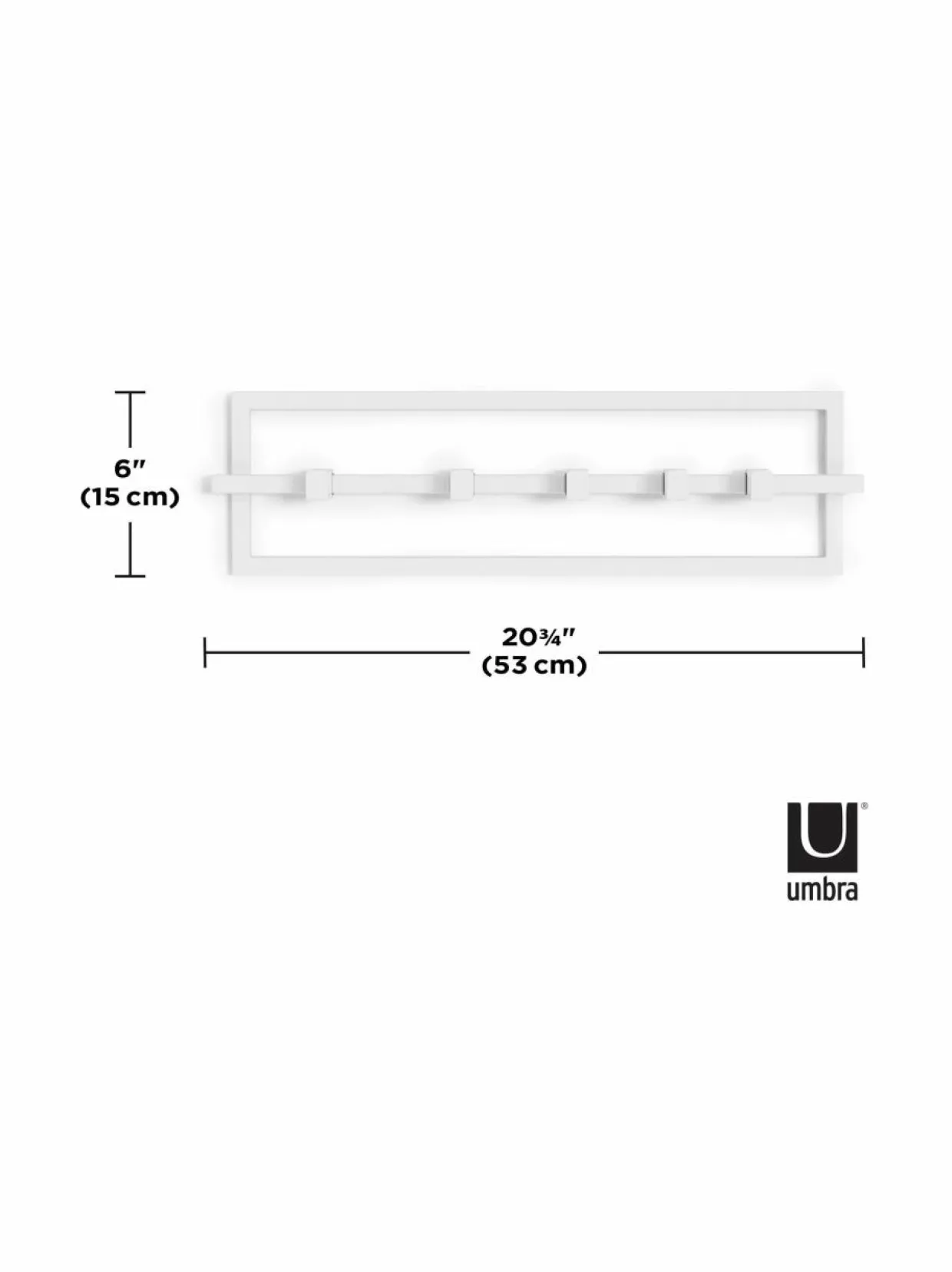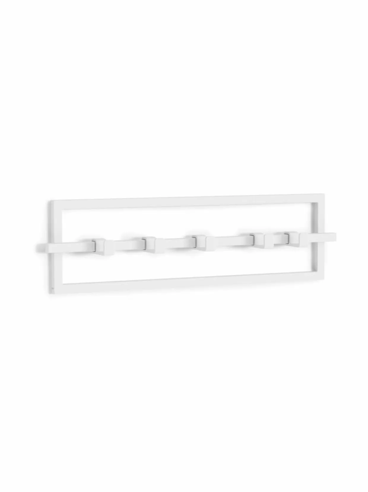 Umbran teräksestä valmistettu Cubiko sopii täydellisesti asusteiden, takkien ja huivien ripustamiseen pitäen samalla tilan järjestyksessä. Tämä helppokäyttöinen säilytysratkaisu on helppo asentaa ja sitä voi käyttää kotisi useissa huoneissa, kuten esim. eteisessä, kylpyhuoneessa tai makuuhuoneessa. Funktionaalisen ja sileän muotoilunsa ansiosta vaatteet ja asusteet eivät ota naulakon reunoihin kiinni.