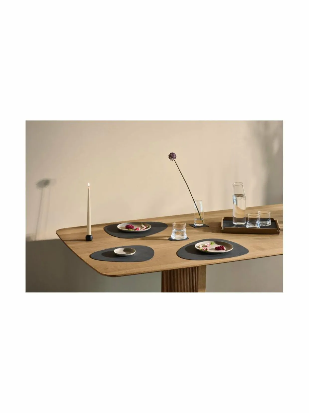 Tanskassa suunniteltu pöytätabletti. Materiaali on OEKO-TEX -sertifioitua kasviparkittua kierrätysnahkaa, joka on peräisin muoti- ja huonekaluteollisuuden ylijäämistä. Pohja on luonnonkumia, joka estää liukumisen.