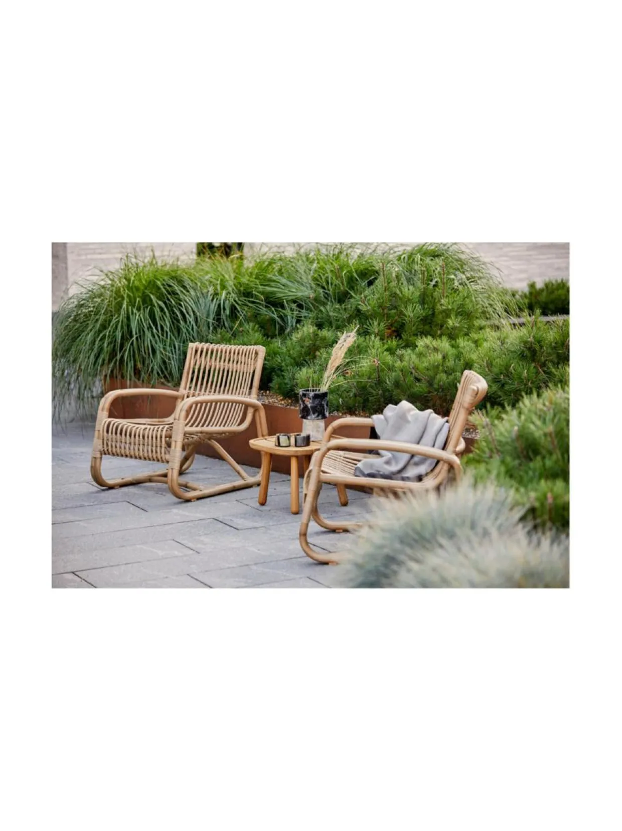 Tyylikäs ja keveän näköinen nojatuoli ulkokäyttöön. 64 cm lev, 77 cm syv, 69,5 cm kork, 32 cm istuinkork, 49 cm käsinojakork. Luonnonvärinen Cane-line Weave® -punosmateriaali, alumiinirunko.
