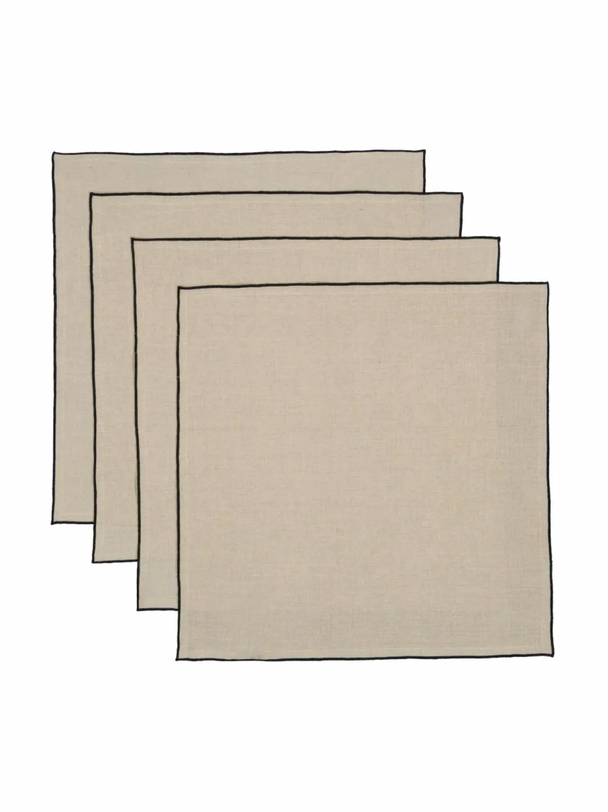 Tuotenumero167281489 Materiaali100 % pellava ValmistusmaaIntia VäriLT. NATURAL LINEN/BLACK Koko45 x 45 cm, 4 kpl AvainsanatCasa Stockmann, lautasliina, koti, keittiö