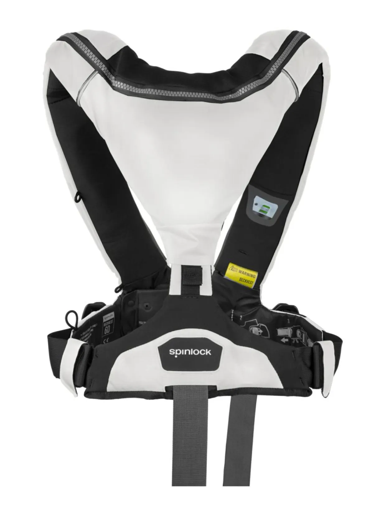 – Korkealaatuinen automaattisesti täyttyvä pelastusliivi valjailla
