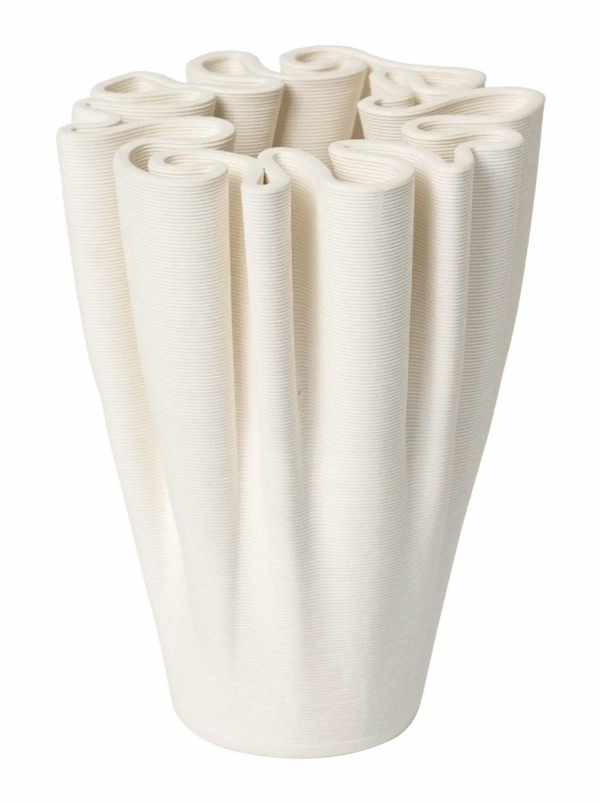 Ferm Livingin Dedali-vaasi on veistoksellinen sisustuselementti, joka yhdistää taiteellisuuden ja toiminnallisuuden. Tämä pienempi versio ikonista vaasista saa muotonsa sokkeloisesta labyrinttikuviosta, joka luo moniulotteisen ja orgaanisen vaikutelman. Vaasi on valmistettu 3D-tulostetusta kivitavarasta – sen ulkopinta on lasittamaton ja rakenne eläväpintainen, kun taas sisäpuoli on lasitettu käytännöllisyyden takaamiseksi. Labyrinttimainen yläosa on täydellinen näyttäviin, Ikebana-henkisiin asetelmiin, joissa korostuvat yksittäisten kukkien ja oksien rytmi ja tila.