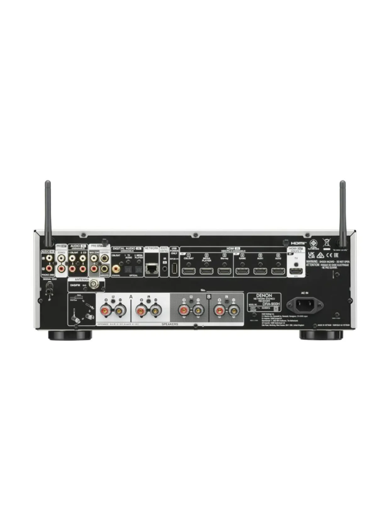 Denon® DRA-900H on 2-kanavainen viritinvahvistin, jonka 2x 100 W jatkuva teho tyypilliseen kaiutinpariin riittää mahtavasti sekä musiikista että elokuvista nautiskeluun. DRA-900H integroituu saumattomasti televisioosi ja muihin äänilähteisiin käyttämällä uusinta HDMI-tekniikkaa, mukaan lukien HDR10+, Dolby Vision™ sekä 8K/60 ja 4K/120 läpäisy. Sisäänrakennetun HEOS®-teknologian avulla voit suoratoistaa musiikkia langattomasti ja jakaa sitä HEOS-yhteensopivien kaiuttimien kanssa kotisi jokaisessa huoneessa. A/B-kaiutinliitännöillä, kahdella subwooferin linjalähdöllä, digitaalisilla ja analogisilla tuloilla sekä MM-phono-levysoitintulolla varustettu DRA-900H tarjoaa eeppisen sekoituksen korkealaatuista musiikinkuuntelua ja elokuvanautiskelua.