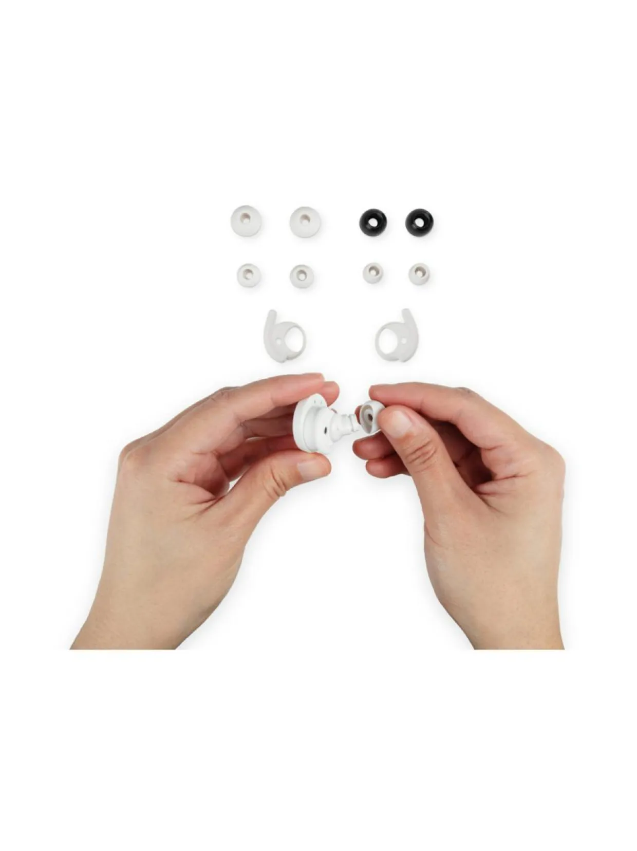 Mukana on viisi erikokoista korvasovitetta ja kaksi erikokoista siivekettä, jotka takaavat mukavan ja pitävän istuvuuden.