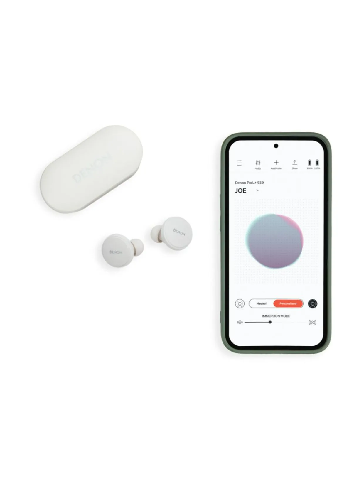 Denon PerL Pro True Wireless -nappikuulokkeisiin luodaan henkilökohtainen ääniprofiili Masimo Adaptive Acoustic Technology (AAT) -tekniikan avulla, jolloin ääni on täydellisesti optimoitu sinua varten. Masimo AAT luo ainutlaatuisen kuuloprofiilisi mittaamalla korviesi heijastamia hyvin hiljaisia ääniä, joita kutsutaan otoakustiseksi emissioksi (OAE). Tämän jälkeen kuulokkeet muokkaavat ääntä niin, että kuulet jokaisen yksityiskohdan hämmästyttävän selvästi. Lisättynä CD-laatuisella häviöttömällä Qualcomm aptX -teknologialla ja Dirac Virtuo -tilatoistolla, Denonille tunnusomainen kuunteluelämys on vertaansa vailla. Vastaa luottavaisesti puheluihin luokkansa parhaalla puheäänen toistolla. Käytä Denon PerL Pro -sovellusta oman profiilin luomiseen ja kuuntelukokemuksen täydelliseen mukauttamiseen. Kuulokkeissa on kahdeksan tunnin akkukesto ja kolme lisälatausta, langatonta latausta tukevan, säilytyskotelon integroidun akun avulla – voit pitää musiikin käynnissä koko päivän.