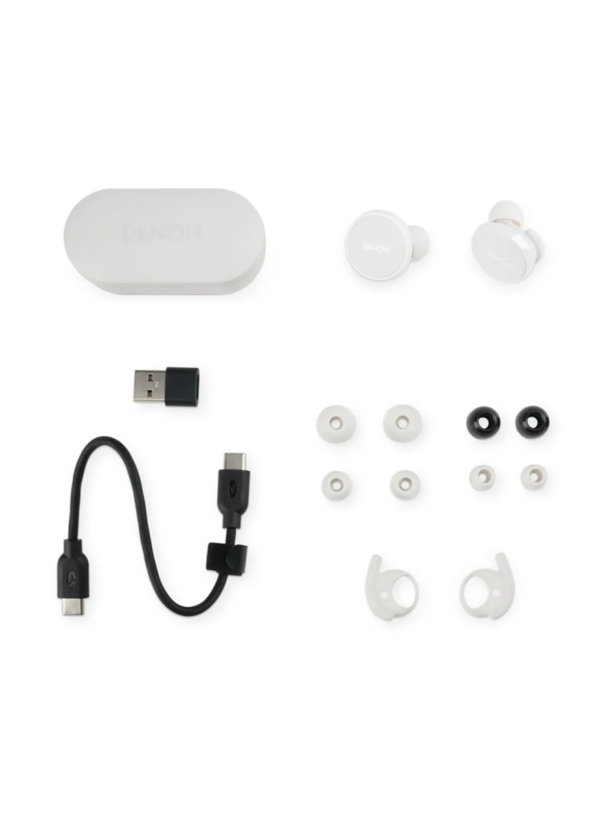 Denon PerL Pro True Wireless -vastamelunappikuulokkeet, valkoinen