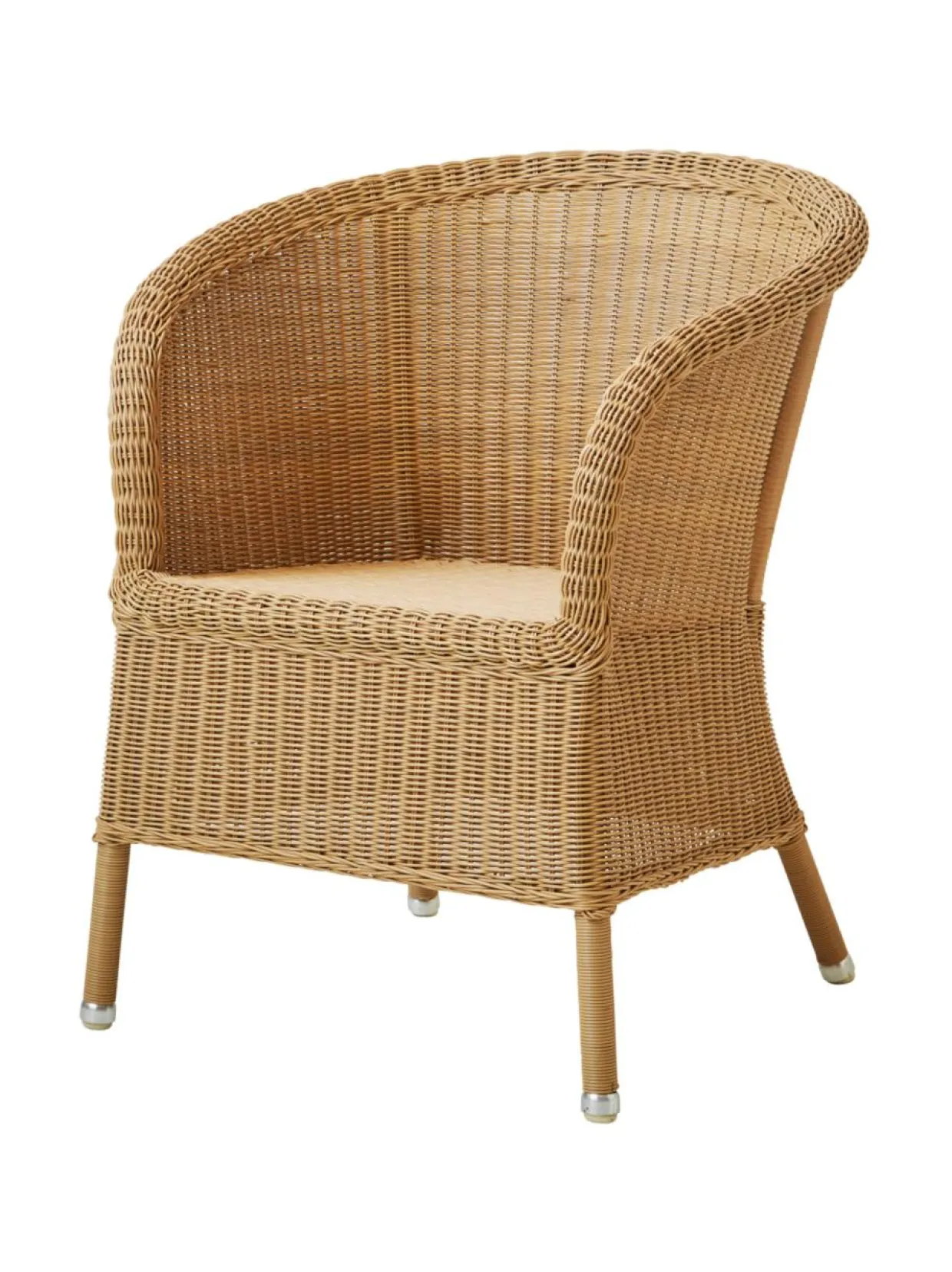 Derby-tuoli ulkokäyttöön. 67 cm lev, 63 syv, 80 kork, 43 istuinkork. Luonnonvärinen Cane-line Weave® -punosmateriaali, teräsrunko.