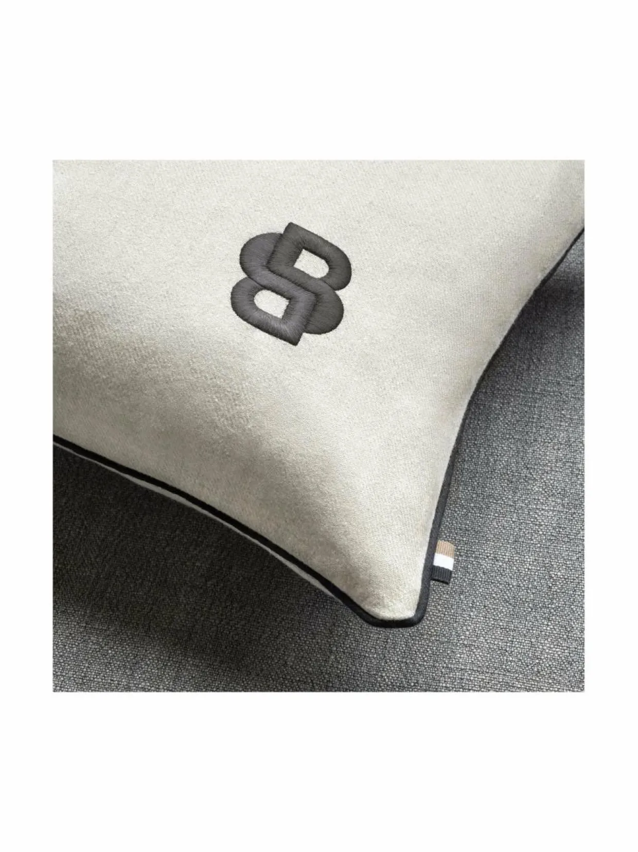 Elegantti tyynynpäällinen, jossa etuosassa on brodeerattu kaksois-B-logo. Toinen puoli on yksivärinen. Vetoketju alareunassa. Tyynynpäällinen on valmistettu materiaaliseoksesta, jossa mukana runsas annos villaa.