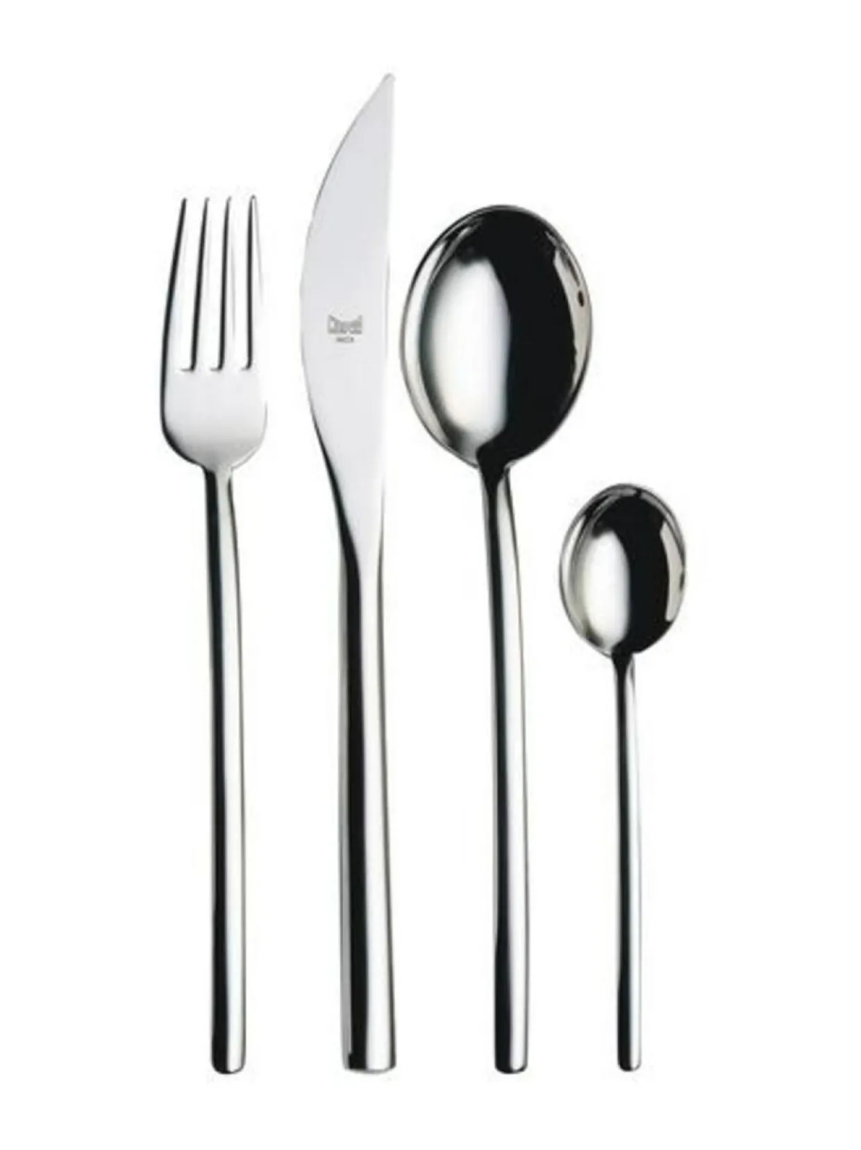 Due on oodi italialaiselle modernille designille. Sen muotoilu lähenee täydellisyyttä eikä se kyllästytä koskaan! Aterinsetti sisältää kuusi ruokahaarukkaa, kuusi ruokaveistä, kuusi ruokalusikkaa ja kuusi kahvilusikkaa. Materiaali on korkealaatuista suomalaista konepesunkestävää ruostumatonta terästä.
