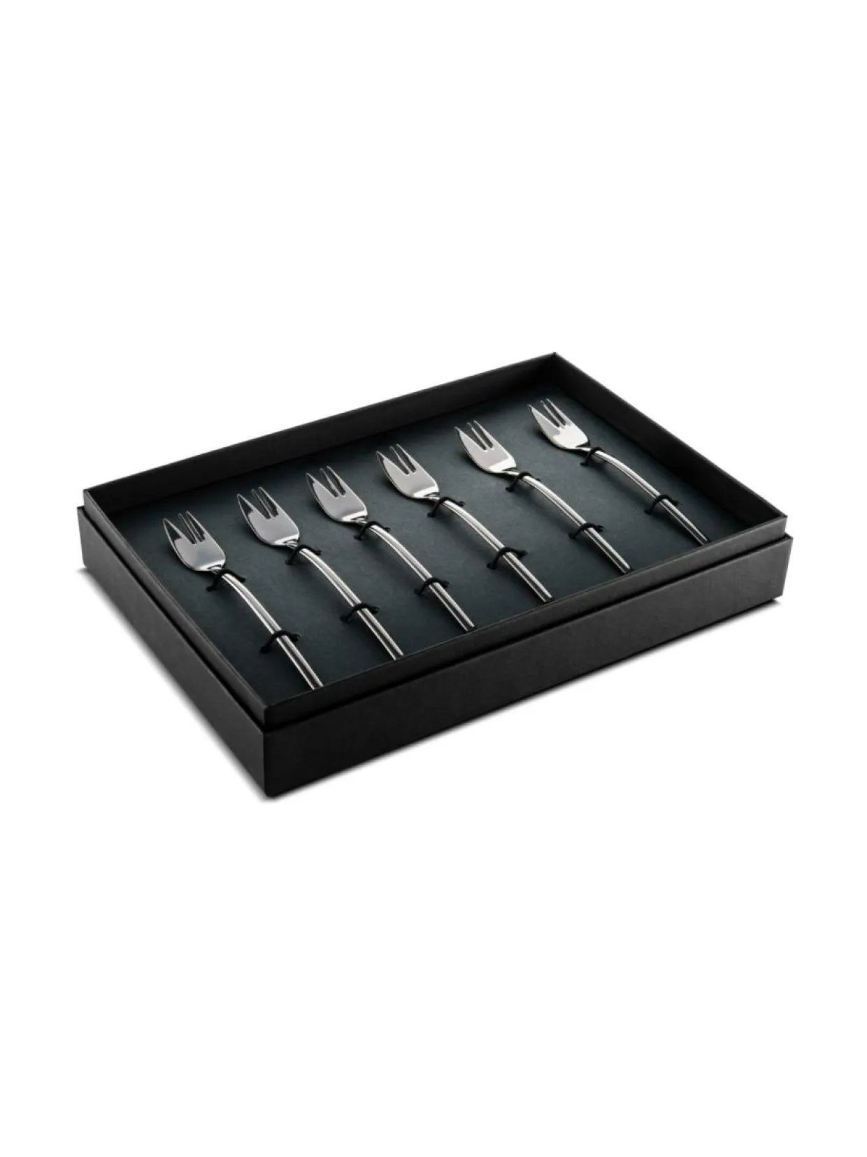 Due Oro Nero-kakkuhaarukka 6 kpl lahjapakkauksessa