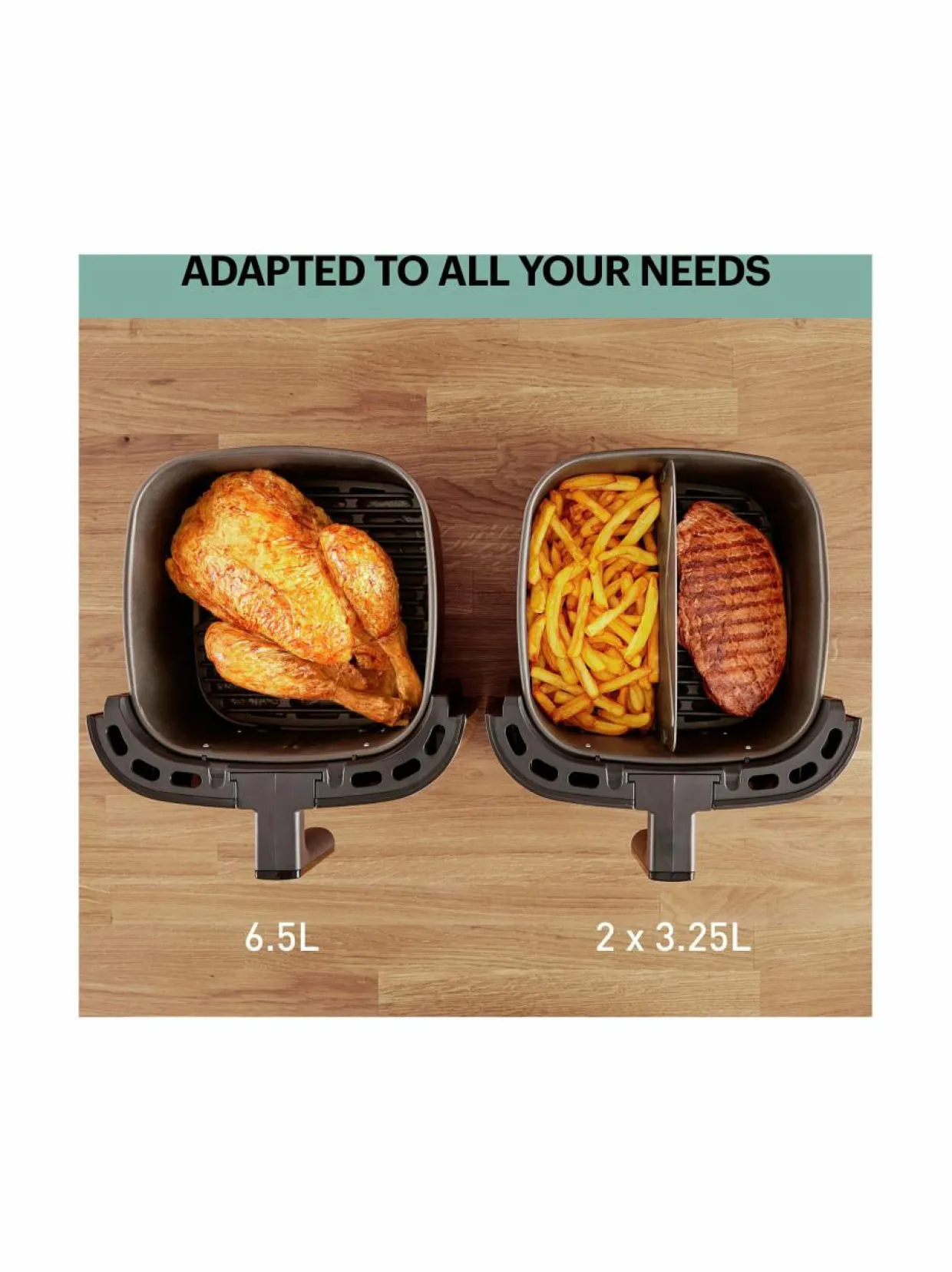 - Ilmafriteerauskeittimessä on 6,5 litran XXL-tilavuus, joka on omiaan 8 hengelle.