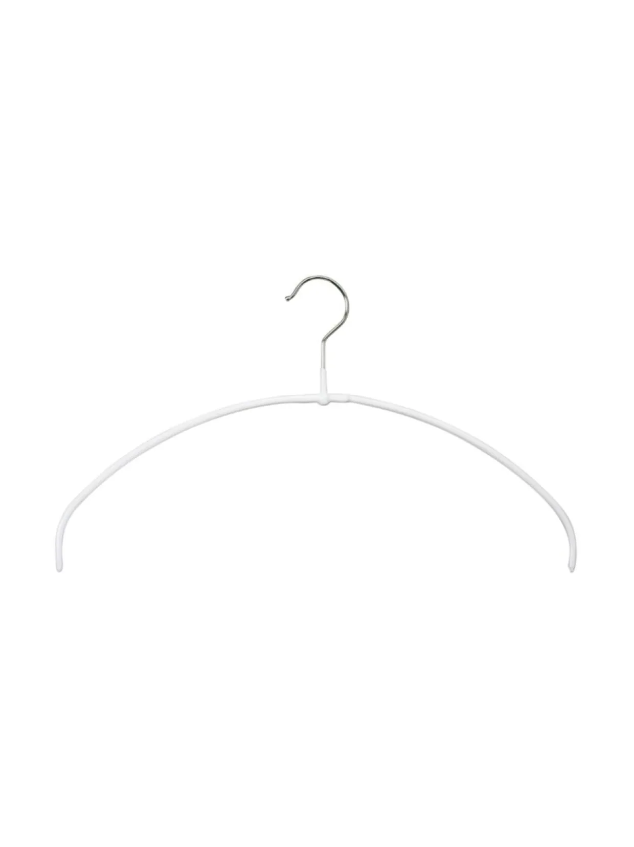 Kevyt ja kestävä metalliripustin, jonka kitkakuminen pinnoite estää vaatteiden liukumisen. Sopii vaikka pyykin kuivattamiseen ulkona. Kapean muotonsa vuoksi ripustin vie normaalia vähemmän tilaa vaatekaapissa. Metallinen koukku pyörii 360°. Ripustin ei sisällä lainkaan raskasmetalleja.