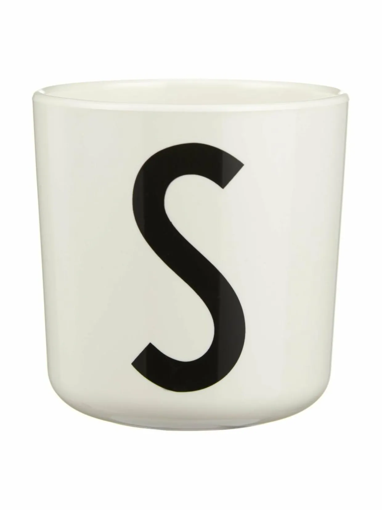 Yksinkertaisen tyylikkään kirjainmukin typografian on suunnitellut Arne Jacobsen. Korvaton muki soveltuu juomien lisäksi piensäilytykseen. Materiaali on melamiinia. Halkaisija on 7 cm, korkeus on 7 cm.