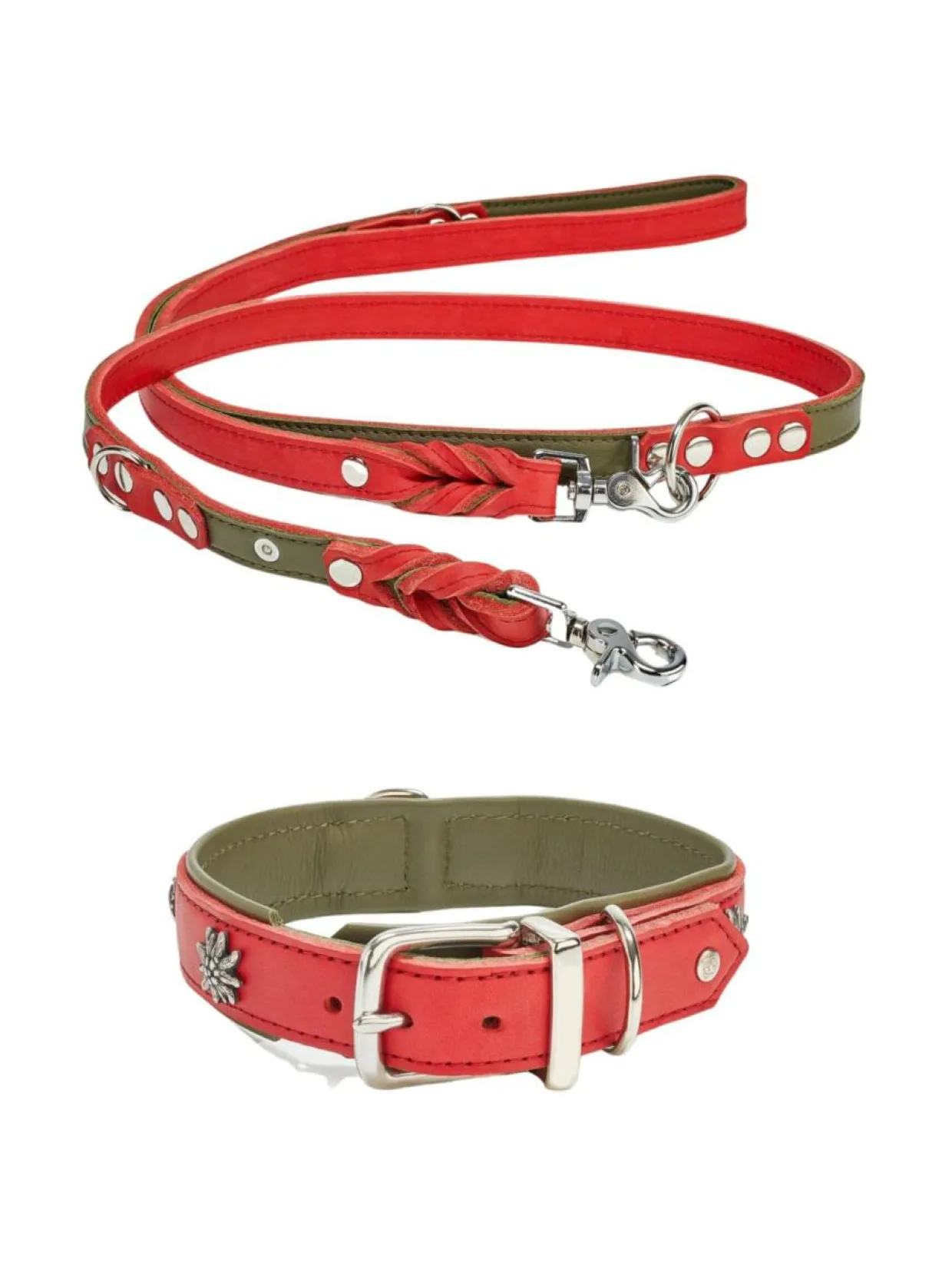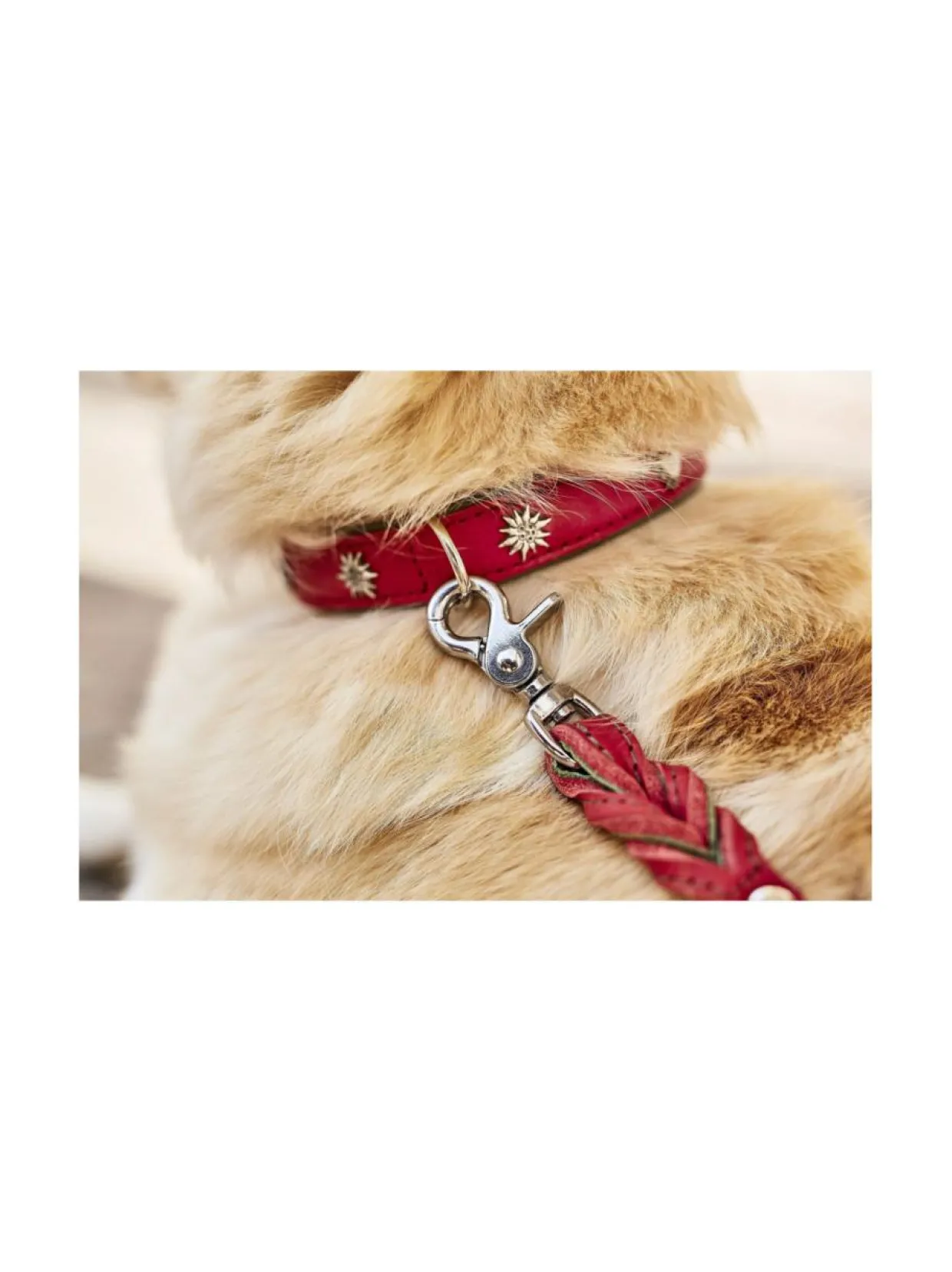 Tämä kestävästä, öljytystä nahkasta valmistettu ja upeilla koristeilla varusteltu Edelweiss kaulapanta ja talutushihna antavat parhaan käyttömukavuuden sekä sinulle että koirallesi. Pannassa on täydelliset saumat, laadukkaat kiinnikkeet sekä kiinteä karbiini takaamassa turvallisuutta. Pyöreä, ommeltu, 3-suuntaisesti säädettävä talutushihna tarjoaa erityisen pehmeän tunteen taluttaessa. Vahvan ompelun lisäksi hihnan ydin on vahvistettu nailonilla lisäämään kestävyyttä. Kaulaa vasten olevan alapuolen samettisen pehmeä nupukkinahka sopii hyvin myös herkille koirille.