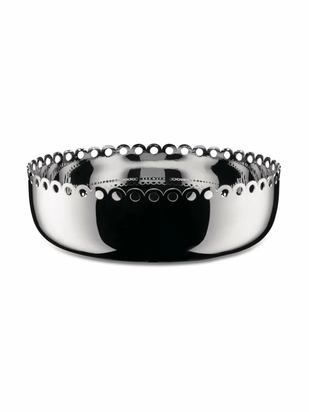 Kauniisti muotoiltu tarjoilukori uudesta il Tornitore Matto -sarjasta. Alberto Alessin suunnittelema astia liittyy hänen isoisänsä perinteisiin metallintyöstötaitoon. Valmistettu hopeanvärisestä ruostumattomasta teräksestä, joka on huolellisesti kiillotettu. Pyöreä muotoilu ja kohotettu reuna tekevät tästä tarjoiluastiasta upean keskikohdan kattaukseen tai koristeeksi. Sen rei’itetyt yksityiskohdat tekevät siitä vieläkin mielenkiintoisemman ja korostavat käsityötaidon huolellisuutta.